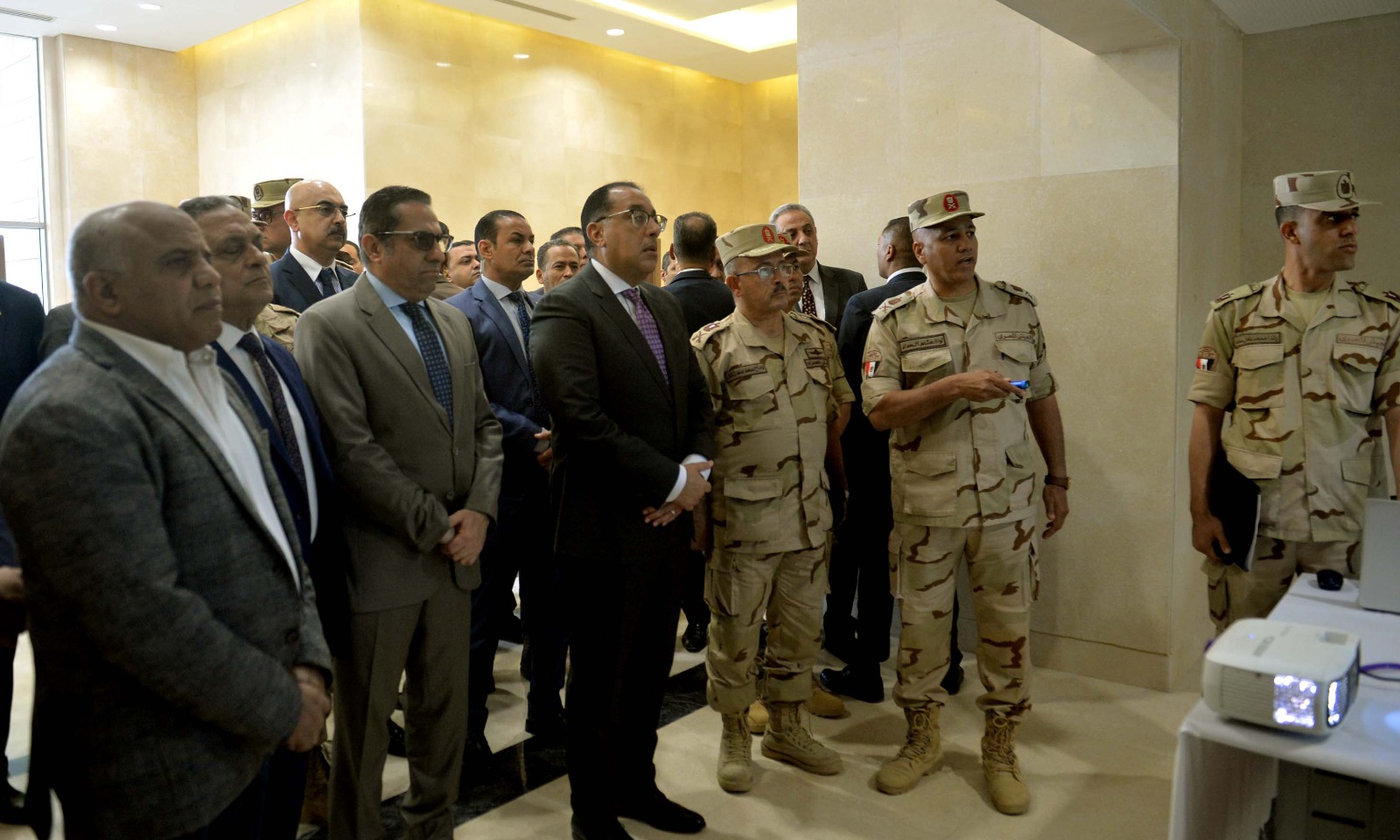 ورافق رئيس الوزراء خلال الجولة اللواء هشام حداد، مساعد رئيس الهيئة الهندسية للقوات المسلحة، المسئولة عن تنفيذ المبنى، واللواء أشرف الجندي، مدير أمن القاهرة، واللواء طارق راشد، مدير الإدارة العامة لشرطة التعمير والمجتمعات العمرانية، واللواء توفيق عبد الرحيم، نائب مدير إدارة النظم بالقوات المسلحة، والمهندس خالد عباس، رئيس مجلس الإدارة، والعضو المنتدب لشركة العاصمة الإدارية الجديدة للتنمية العمرانية، وعدد من المسئولين المعنيين.