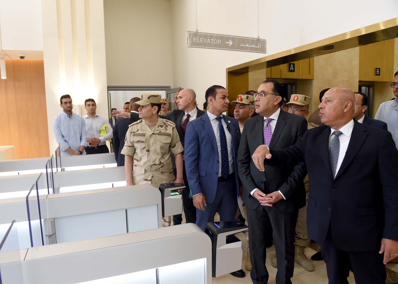 وخلال ذلك، أشار الفريق كامل الوزير إلى أن مقر الوزارة يشمل أيضا الجهات الأخرى التابعة للوزارة وليس العاملين بديوان الوزارة فقط، ثم توجه الدكتور مصطفى مدبولي لتفقد قاعة المؤتمرات الكبرى التي تتسع لنحو ٨٦ شخصا وتم تجهيزها بأحدث وسائل العرض والتقنيات.