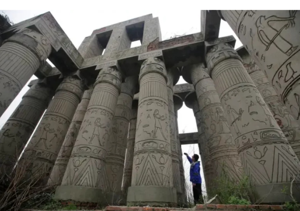 كما هو موضح بالصور سائح نسخة طبق الأصل من معبد الكرنك في ووهان.