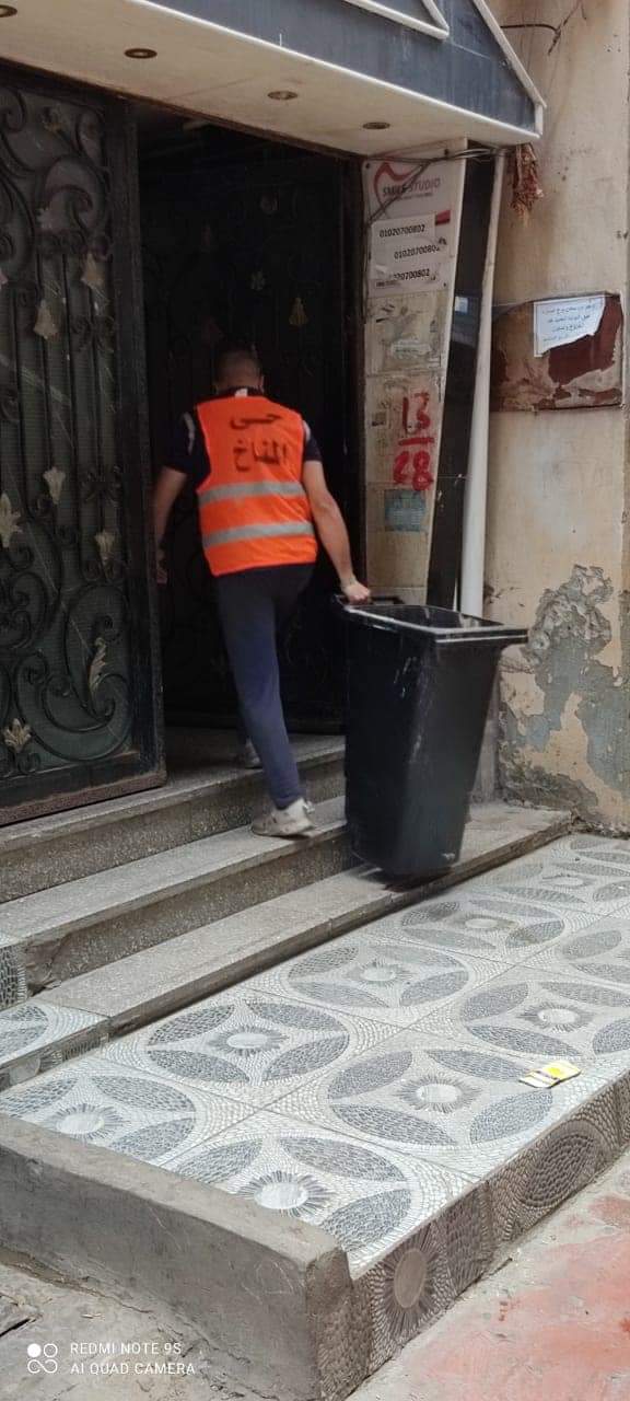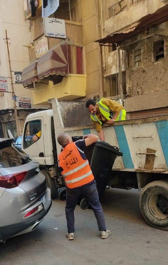 وأضاف: " تواصل فرق العمل الميدانية في حي المناخ برئاسة مدحت صالح، أعمال الجمع المنزلي للقمامة من المناطق المنضمة للمنظومة ومنها الأبراج السكنية بشارع سعد زغلول "الثلاثيني" بنطاق الحي.