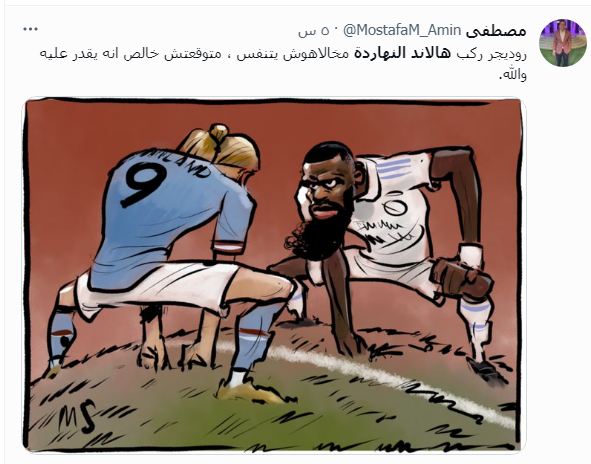 كما علق حساب آخر باسم مصطفى أمين: روديجر مخلاش هالاند النهارده يتنفس، ما توقعتش خالص إنه يقدر عليه والله.
