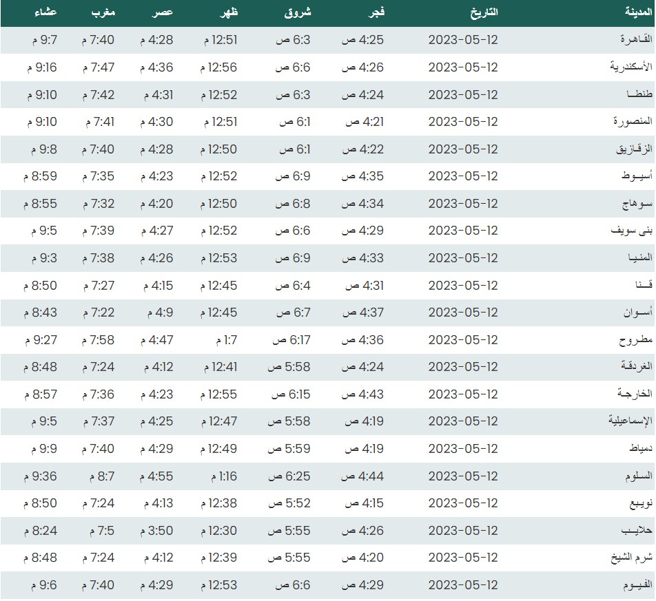 مواقيت الصلاة اليوم بتوقيت القاهرة