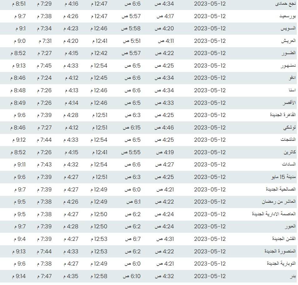 مواقيت الصلاة اليوم القاهرة والمحافظات