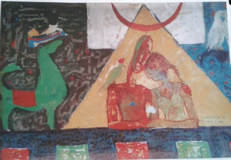 ويضم المعرض 20 لوحة بالخامات المختلفة التى تدور حول الحواديت الأسطورية من التراث الشعبي المصري.