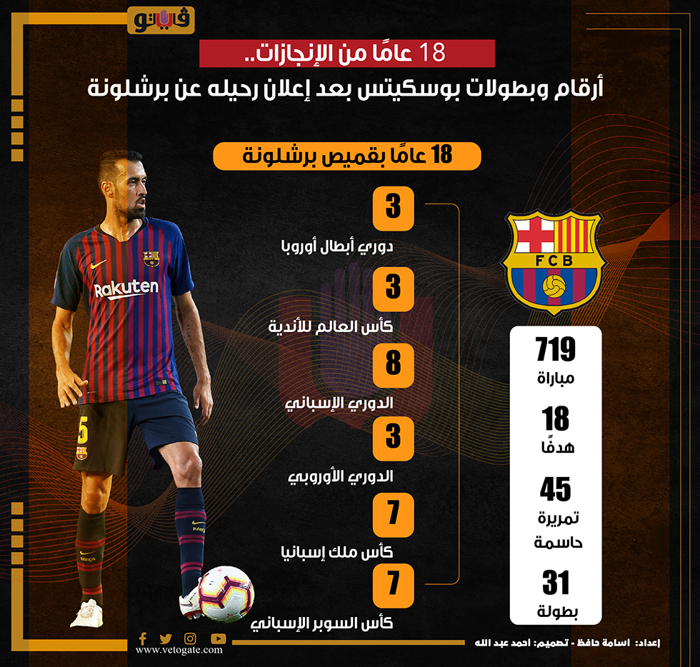 18 عامًا من الإنجازات.. أرقام وبطولات بوسكيتس بعد إعلان رحيله عن برشلونة (إنفوجراف) الأربعاء 10/مايو/2023 - 07:43 م 5/10/2023 7:43:46 PM بوسكيتس اسامة حافظ شارك طباعة 18 حجم الخط شارك طباعة الدوري الإسباني الدورى الأوروبي الدوري الإسبان السوبر الإسباني بوسكيتس