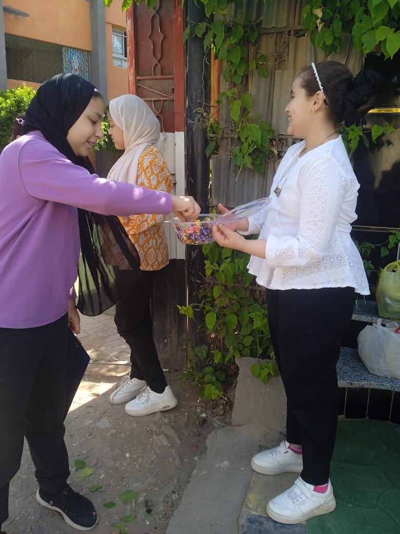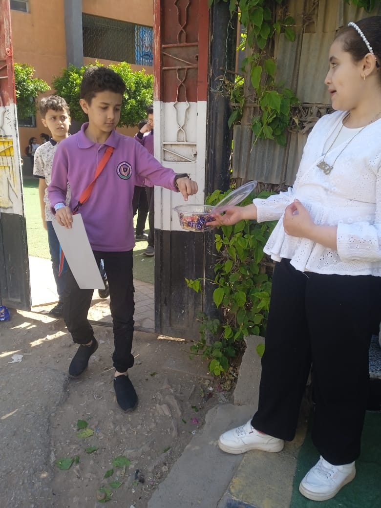 قررت التلميذة ريناد الخولى توزيع البنبونى على زملائها عقب انتهاء امتحانات الصف الخامس الابتدائى، كنوع من أنواع فك الضغط على التلاميذ وذلك أمام إحدى المدارس بمركز الشهداء فى محافظة المنوفية.