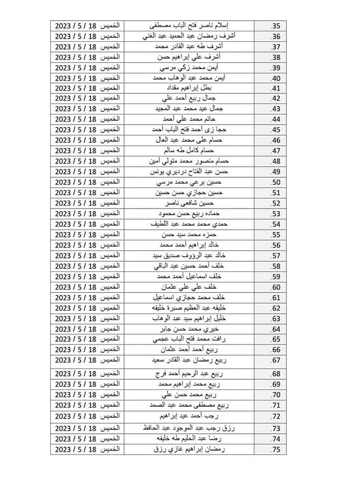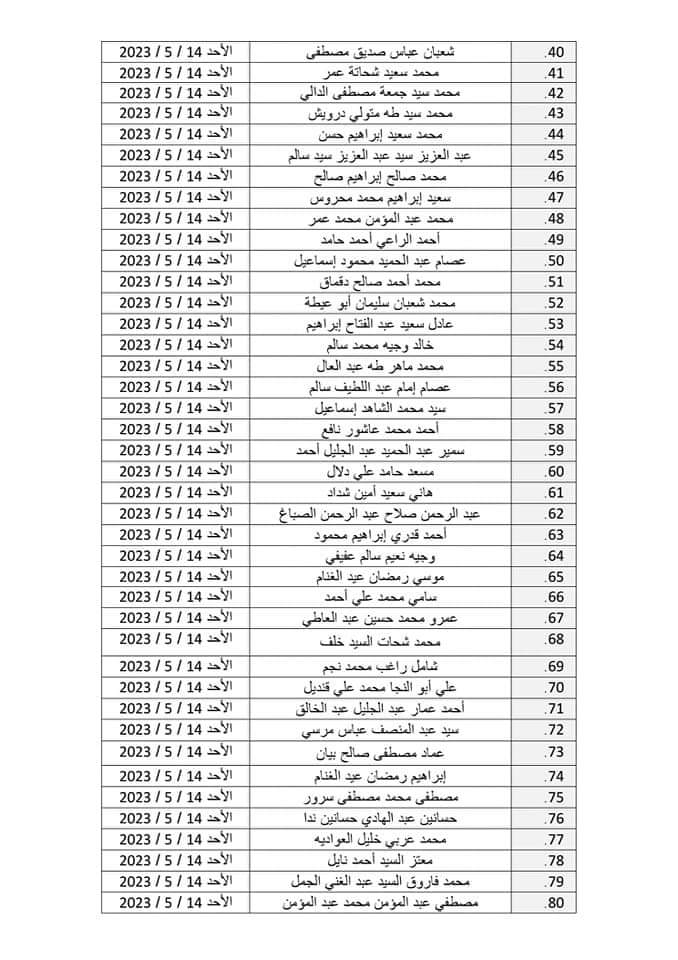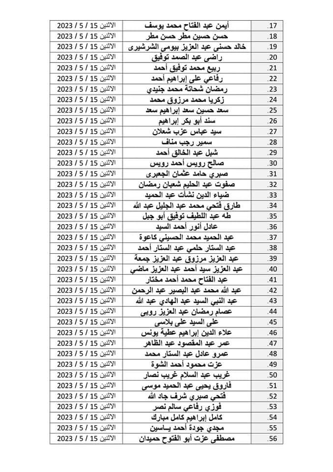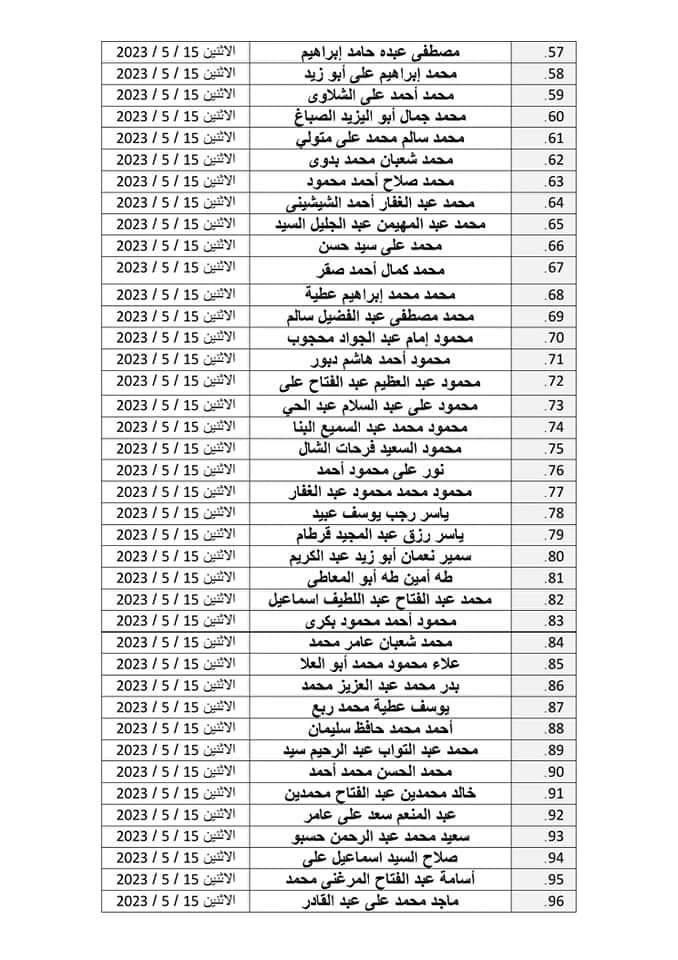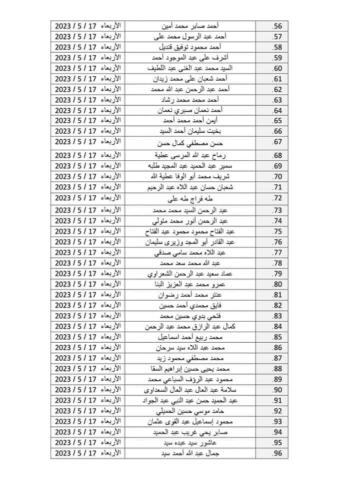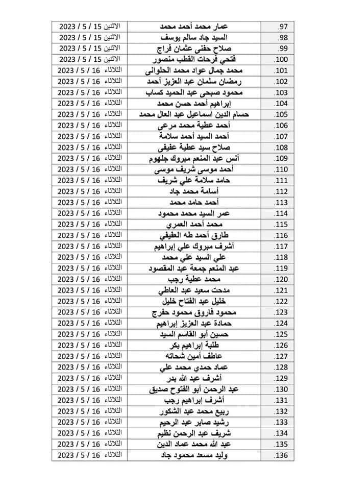 وعلى مديري المديريات التنبيه على الآتية أسماؤهم بالتوجه لاستلام الزي الأزهري بمسجد الرحمة بجوار ديوان عام الوزارة في الموعد المحدد أمام كل منهم، مع وجود مسئول الزي بكل مديرية ( المخازن )، علمًا بأن التوزيع سيتم بدءًا من يوم الأحد 14 / 5 / 2023م حتى يوم الخميس 18 / 5 / 2023م، من الساعة التاسعة صباحًا حتى الساعة الثانية والنصف عصرًا، وذلك على النحو التالي: