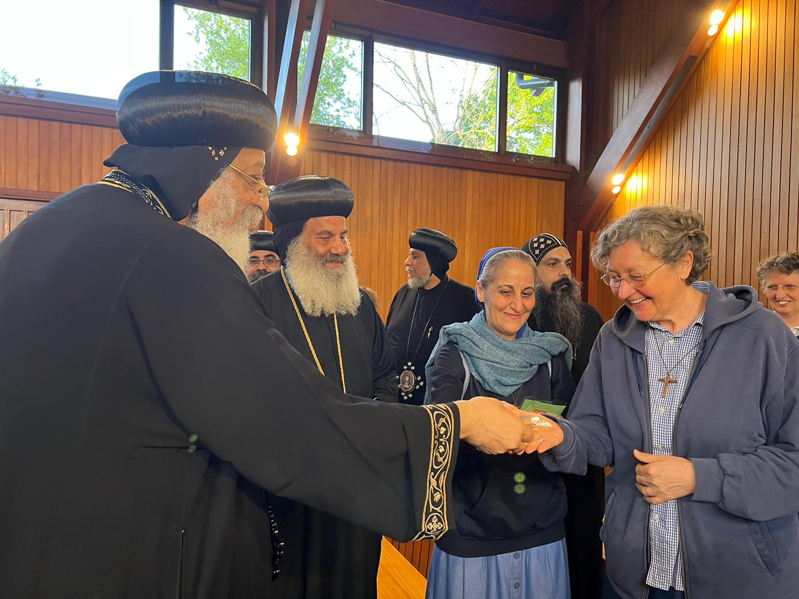 ورحبت الأخت مارتا رئيسة الدير والراهبات بقداسة البابا معربين عن فرحتهم بزيارة قداسته للدير.