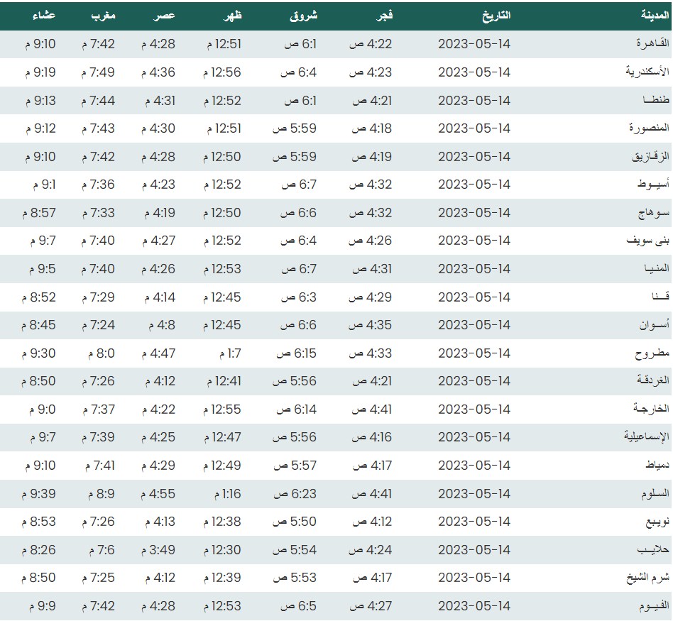 مواقيت الصلاة اليوم القاهرة والمحافظات