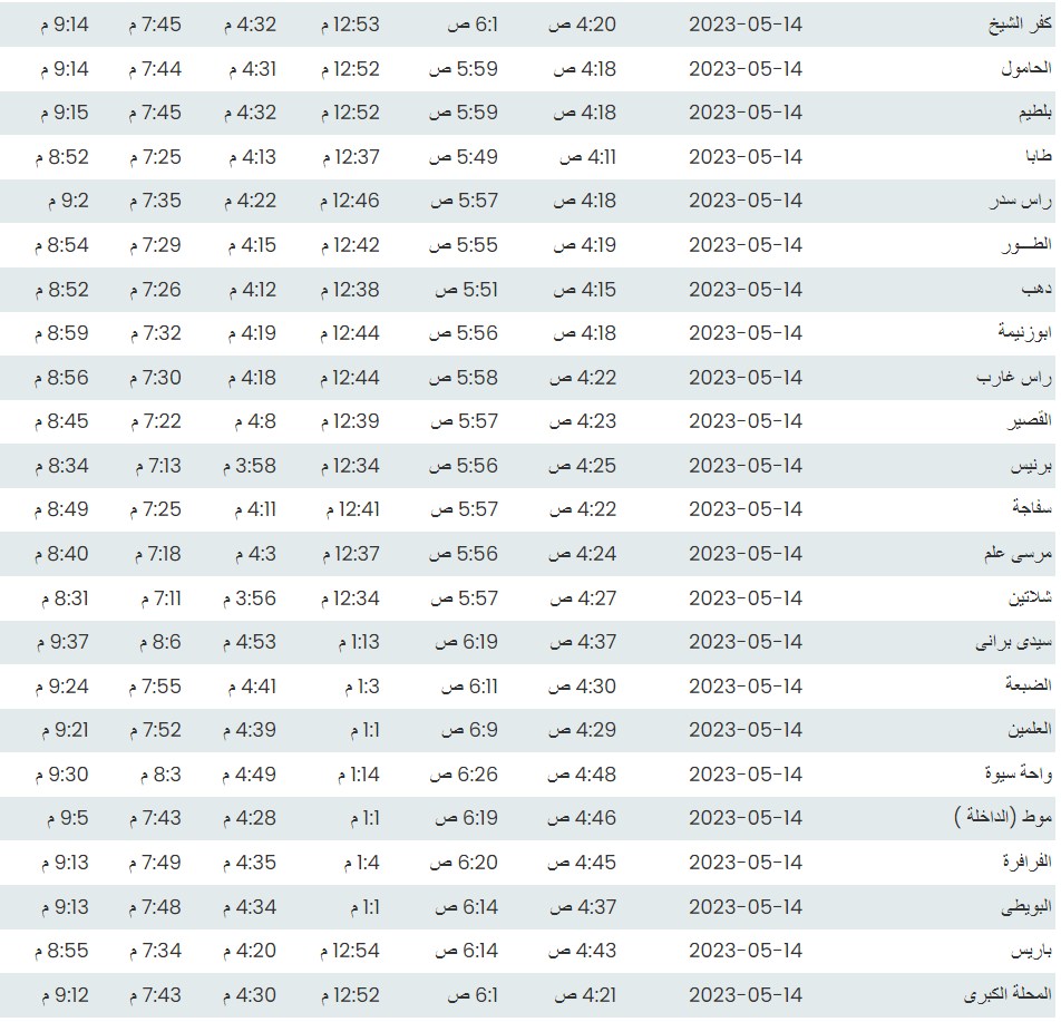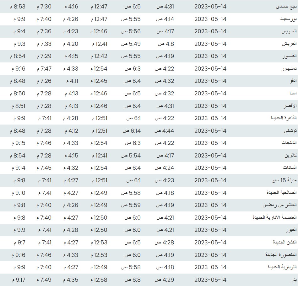 مواقيت الصلاة اليوم بتوقيت القاهرة