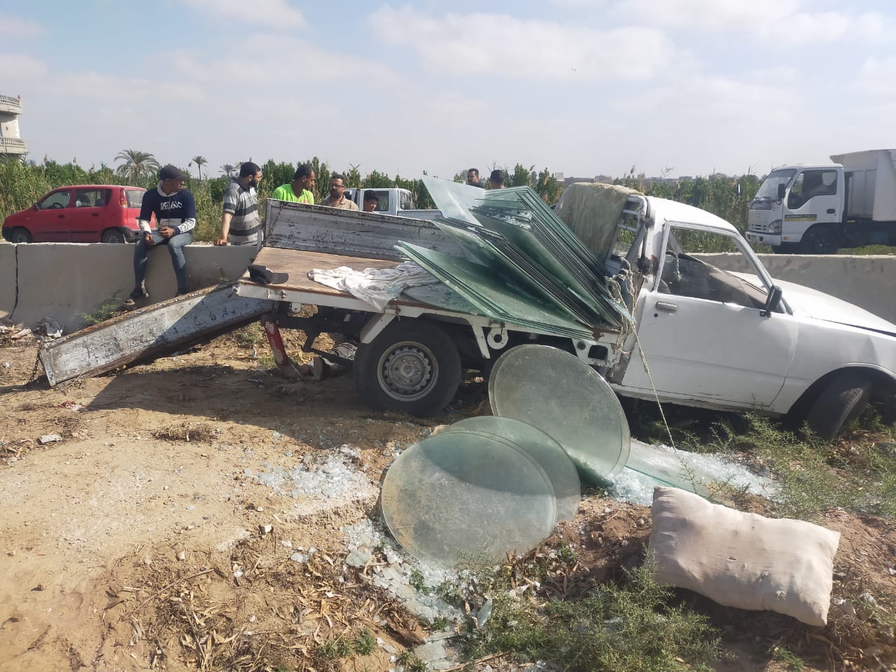 أصيب شخصين في حادث تصادم سيارة نقل تقيل مقطورة مع أخرى ربع نقل بطريق الإسماعيلية الزقازيق الزراعي، وأمام قرية حماد موسي.
