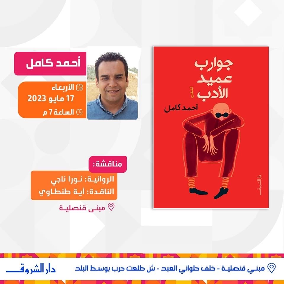 تنظم دار الشروق للنشر والتوزيع ندوة لمناقشة المجموعة القصصية "جوارب عميد الأدب" للكاتب أحمد كامل، وذلك في تمام السابعة من مساء يوم الأربعاء المقبل الموافق 17 مايو الجاري، بمبنى قنصلية بوسط القاهرة.