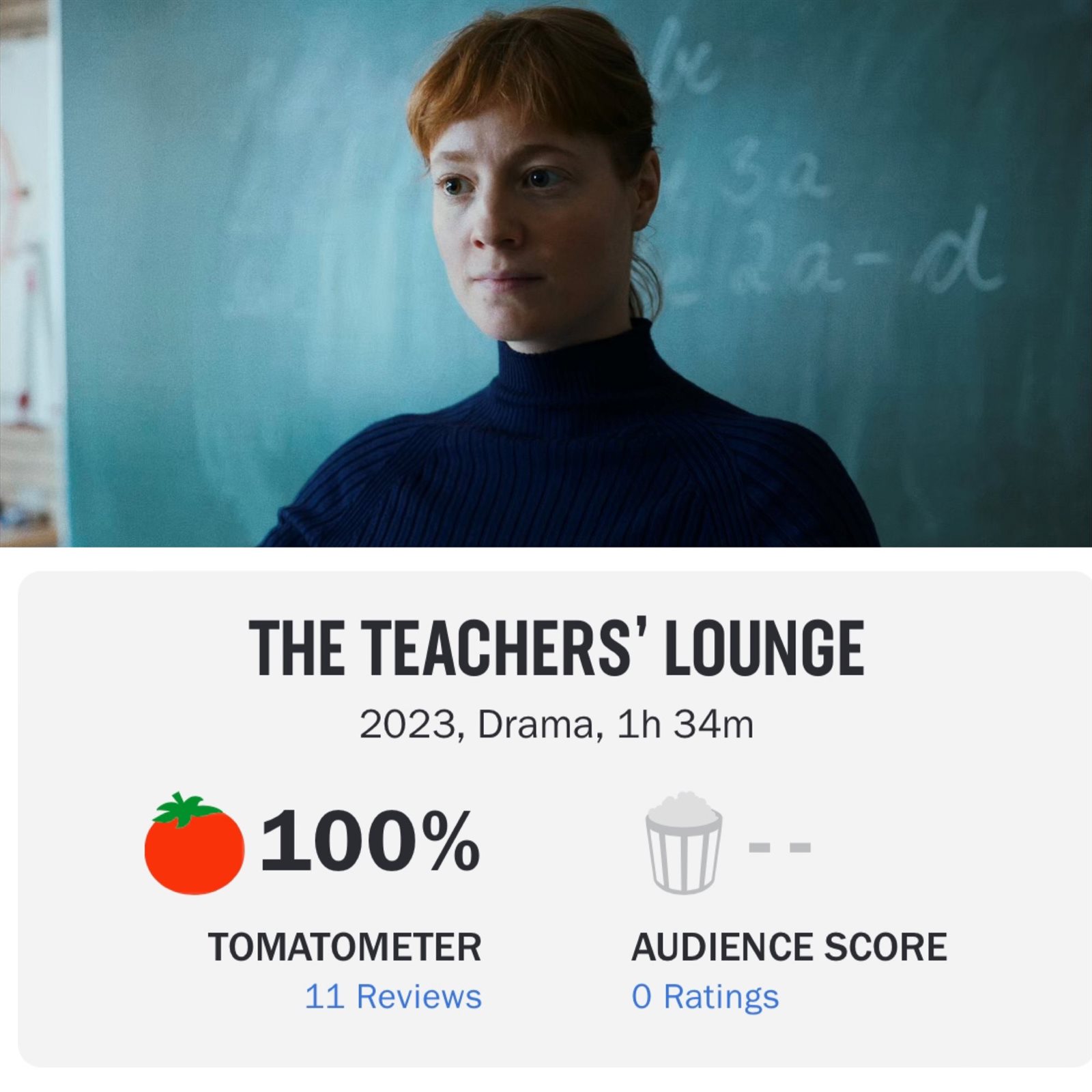 وحصل فيلم "The Teacher’s Lounge، علي تقييمات وصلت لـ ١٠٠٪، علي العديد من مواقع التقييمات العالمية، كما حظي باعجاب المشاهدين بعد عرضه علي المنصات الرقمية العالمية.