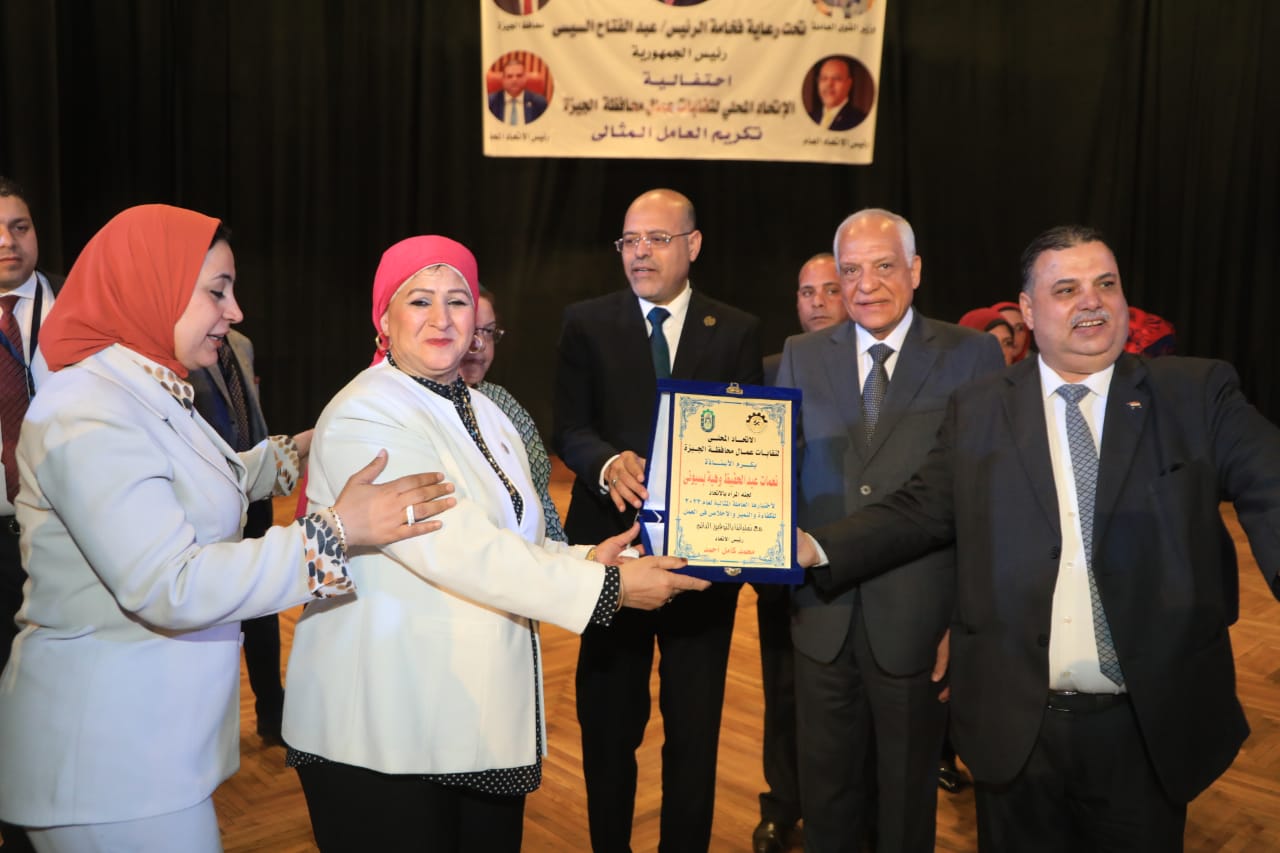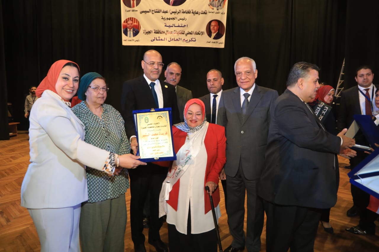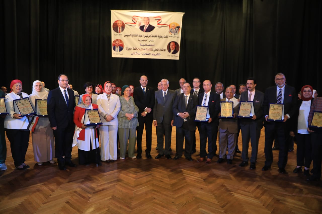 كما شهدت الاحتفالية تكريم اللواء أحمد راشد محافظ الجيزة عائشة عبد الهادي وزير القوي العاملة الاسبق لجهودها المثمرة في تحسين بيئة العمل.