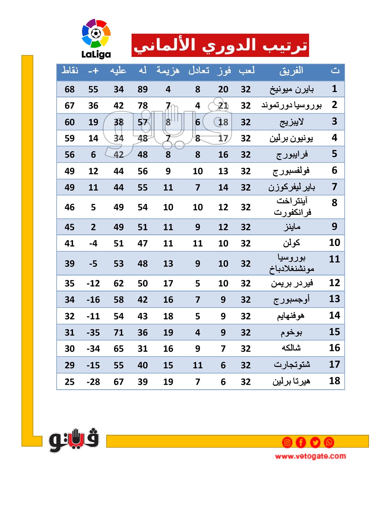 ترتيب الدوري الألماني عقب الجولة الـ 32