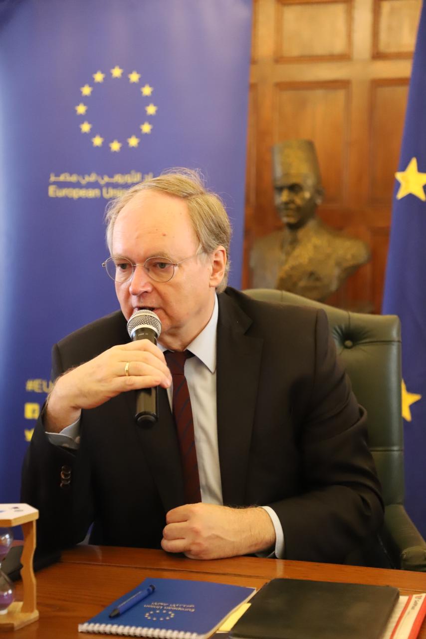 وأوضح أهمية دعم الاتحاد الأوروبي لمشروعات التنمية المختلفة، والانضمام إلى القطاع الخاص المصري في استثمارات مختلفة.