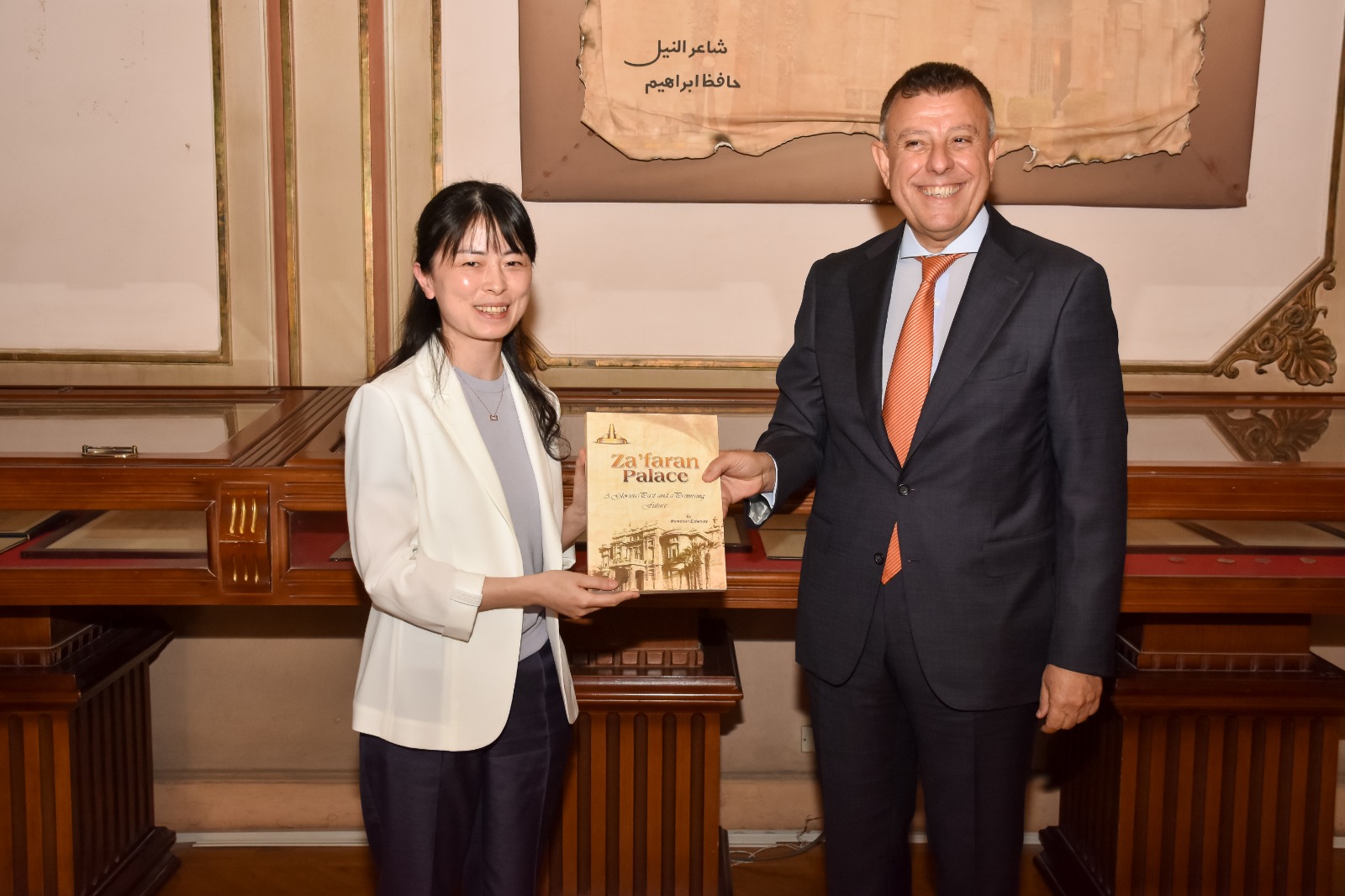 أعقب اللقاء تبادل الدروع والهدايا التذكارية وأهدى محمود المتيني أعضاء الوفد نسخ من كتاب قصر الزعفران، ثم قام الوفد بجولة تفقدية داخل متحف قصر الزعفران.