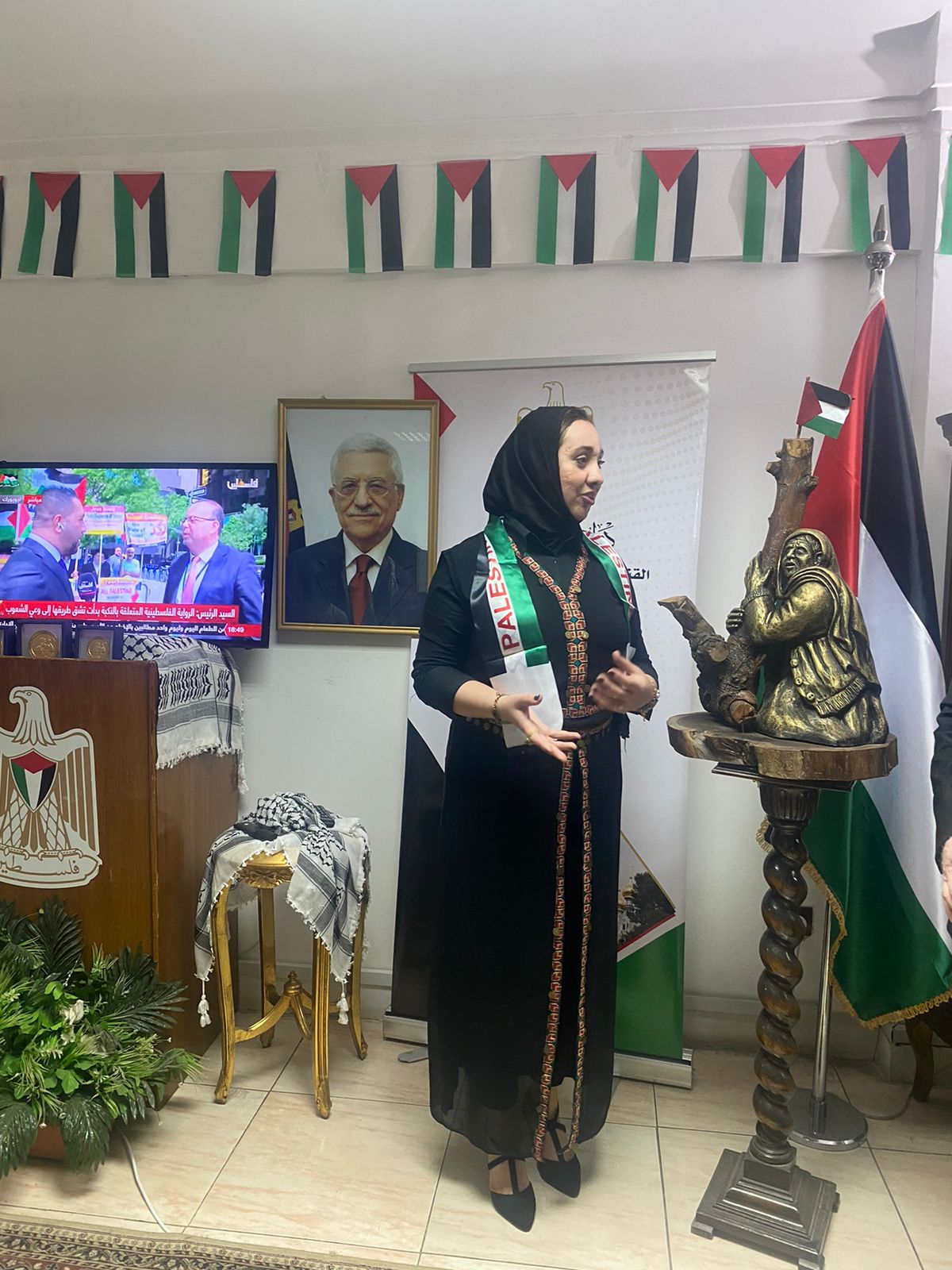 وكرم الفنانة التشكيلية منيرة مصطفى والتي أهدت القنصلية العامة لدولة فلسطين بالإسكندرية تمثالا من الخشب لامرأة فلسطينية متمسكة بأرضها بمناسبة ذكرى النكبة، والتي تمثل امرأة استشهدت وهي متمسكة بجذع شجرة زيتون.