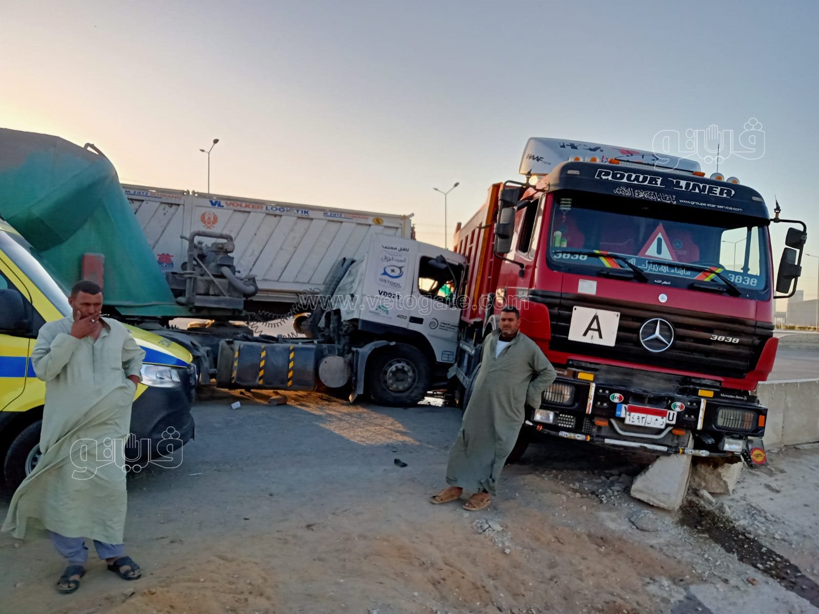 حادث تصادم بين سيارتي نقل بالطريق الإقليمي (صور)