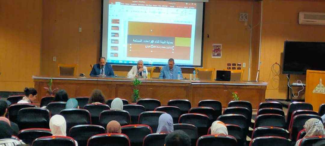 نظم قطاع شئون خدمة المجتمع وتنمية البيئة بكلية الألسن جامعة عين شمس، ندوة بعنوان "حماية البيئة اثناء النزاعات المسلحة"، ضمن فعاليات الأسبوع الثقافي للبيئة.