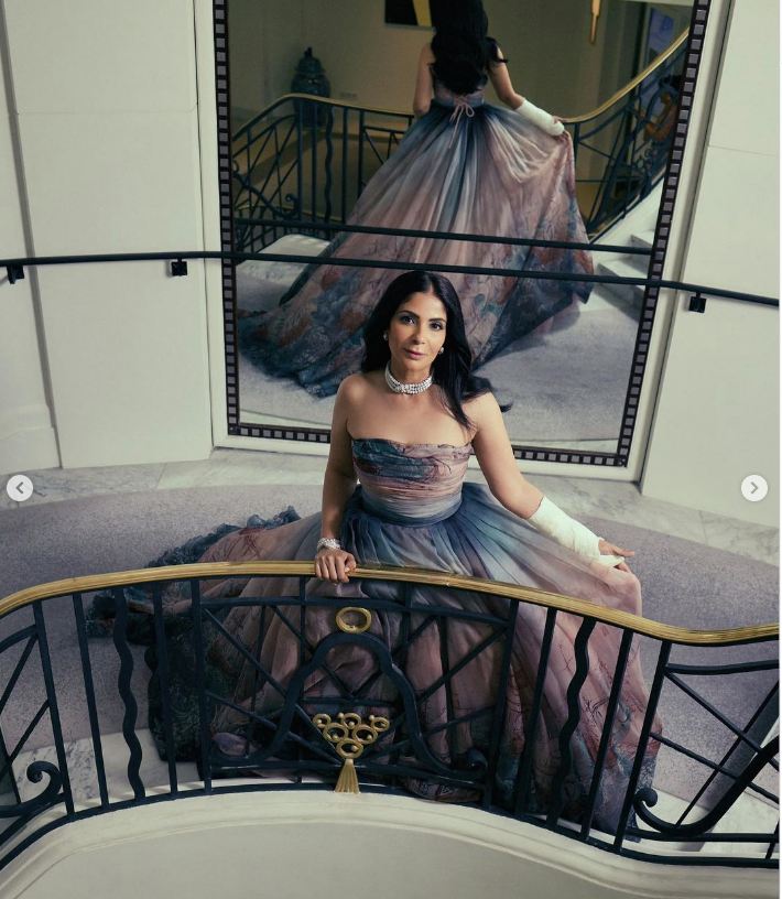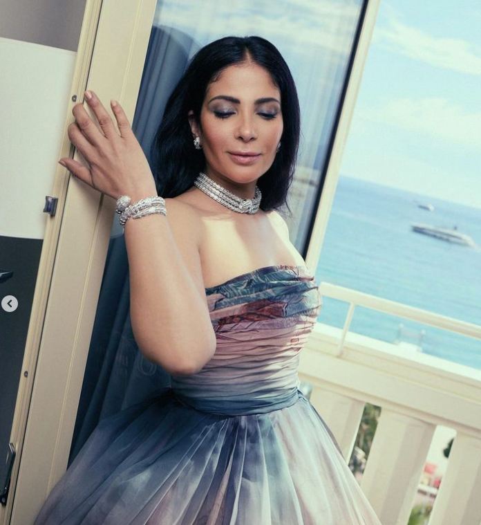 مهرجان كان، منى زكي تتألق على السجادة الحمراء وإصابة يدها تتصدر السوشيال ميديا (صور)