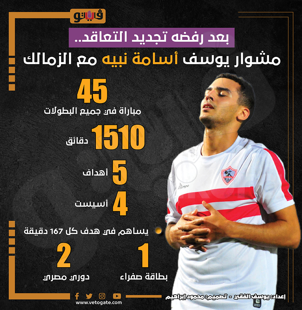بعد رفضه تجديد التعاقد.. مشوار يوسف أسامة نبيه مع الزمالك (إنفو جراف) الثلاثاء 16/مايو/2023 - 11:38 م 5/16/2023 11:38:32 PM يوسف أسامة نبيه،فيتو يوسف الفقي شارك طباعة 18 حجم الخط شارك طباعة الزمالك نادي الزمالك الزمالك اليوم يوسف اسامة نبيه عقد يوسف أسامه نبيه
