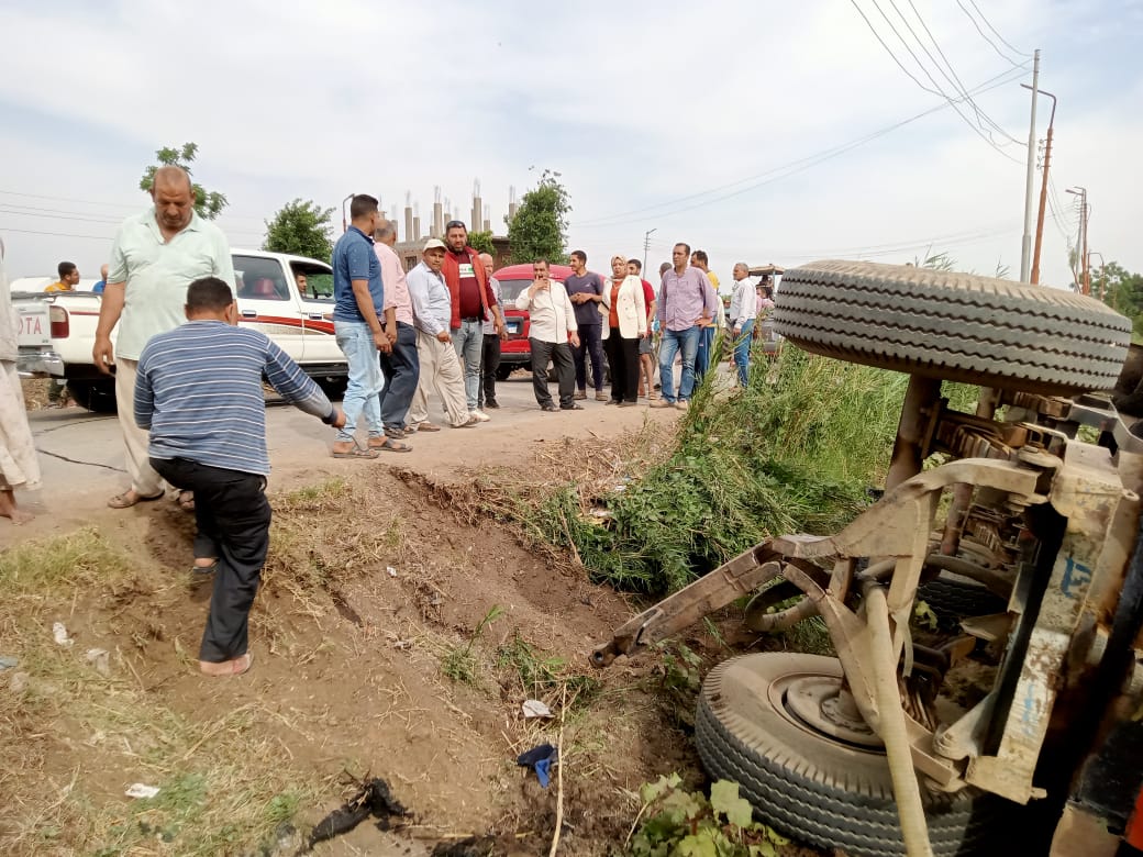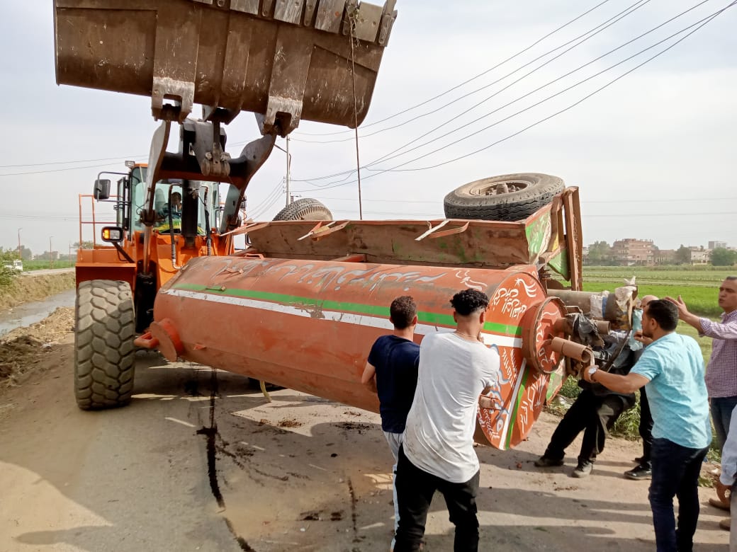 لحظة مطاردة رئيس مدينة الباجور لسائق جرار كسح يلقي مياه الصرف في مصرف (صور)
