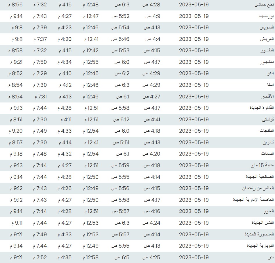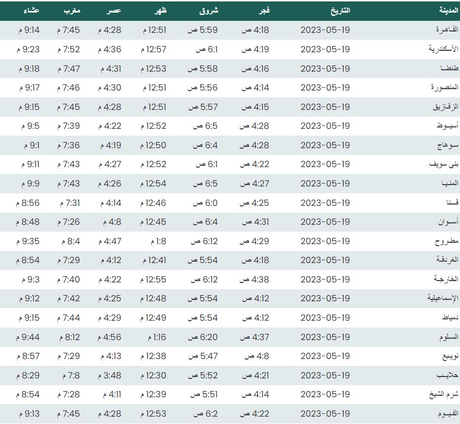 مواقيت الصلاة اليوم بتوقيت القاهرة