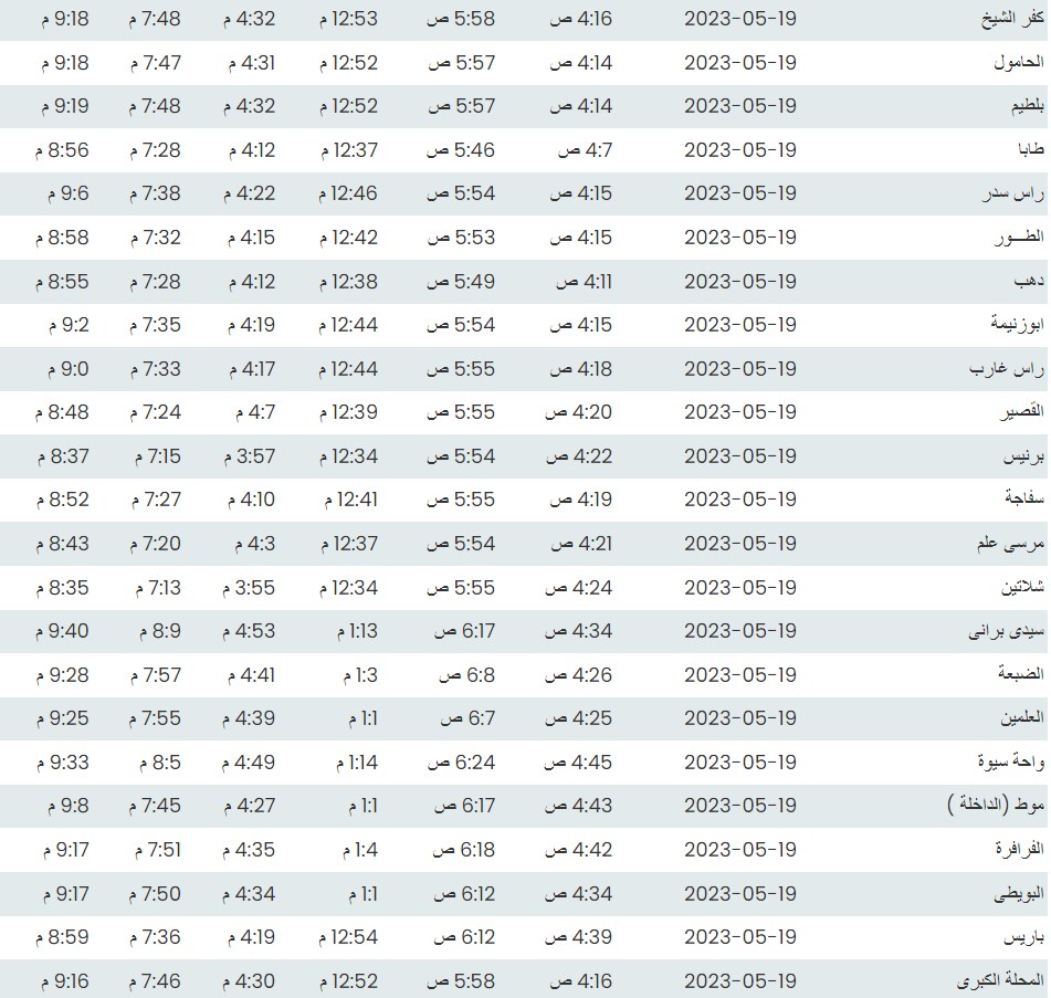 مواقيت الصلاة اليوم بتوقيت الإسكندرية