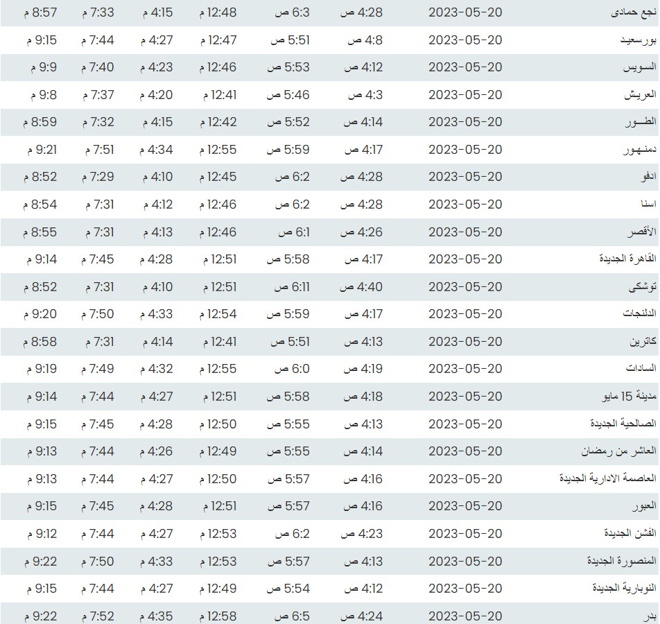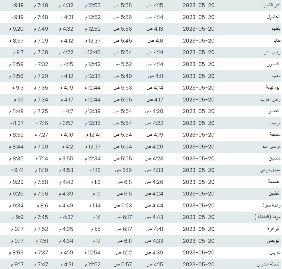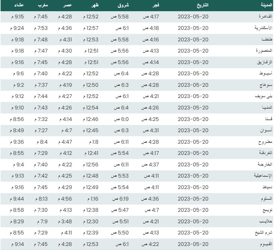 مواقيت الصلاة اليوم بتوقيت القاهرة