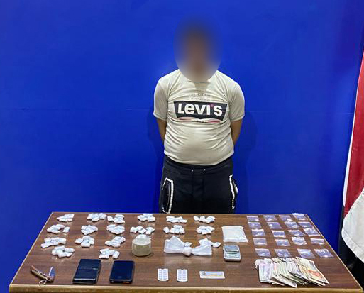- ضبط (أحد الأشخاص- له معلومات جنائية).. وبحوزته (كمية من المواد المخدرة "الهيروين، الآيس "الشابو" – عدد من الأقراص المخدرة لعقار الترامادول- سلاح أبيض- ميزان حساس- مبلغ مالى– 3 هواتف محمول).