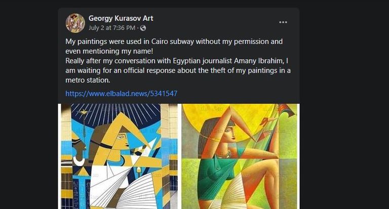 وسرعان ما قالت الهيئة القومية للأنفاق وشركة "آر. إيه. تي. بي" ديف للنقل كايرو، المسؤولة عن تشغيل الخط الأخضر الثالث، إنها تابعت عن كثب ما يدور على مواقع التواصل الاجتماعي والمنصات الإعلامية فيما يخص استخدام تصميمات فنية من أعمال فنان روسي في المشروع الثقافي داخل محطة كلية البنات في الخط الأخضر الثالث.