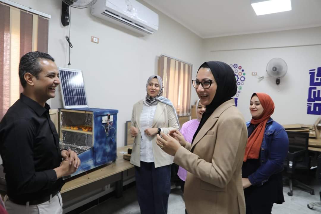 ومن جانبها استعرضت مشروعات تخرج متدربي الدورة التدريبية في مجال الطاقة المتجددة، مشيدةً بأفكار المشروعات التي نفذها المتدربون، والتي تواكب احتياجات المحافظة ومستهدفات سوق العمل ومنها مشروع تجفيف الفواكه ومشروع التحكم الإلكتروني في منظومة الري، وذلك بالاعتماد على الطاقة النظيفة،موجهًة بإعداد دراسات جدوى للمشروعات لتنفيذها على أرض الواقع.