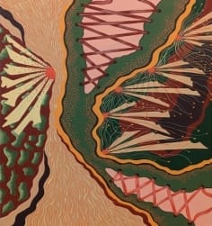 ويتناول المعرض لوحات تصميمه تتحدث عن أنطولوجيا الخط واللون والتي تكون ذات منحنى انطباعي من خلال الرجوع لأصل الأشياء في اللوحة التصميمة وبلوغ عمق المحسوس فيها من خلال حركة الخطوط وتنوع ألوانها وتأثيراتها الميتافيزيقية من ناحية انطباعية ذاتية للفنانة.
