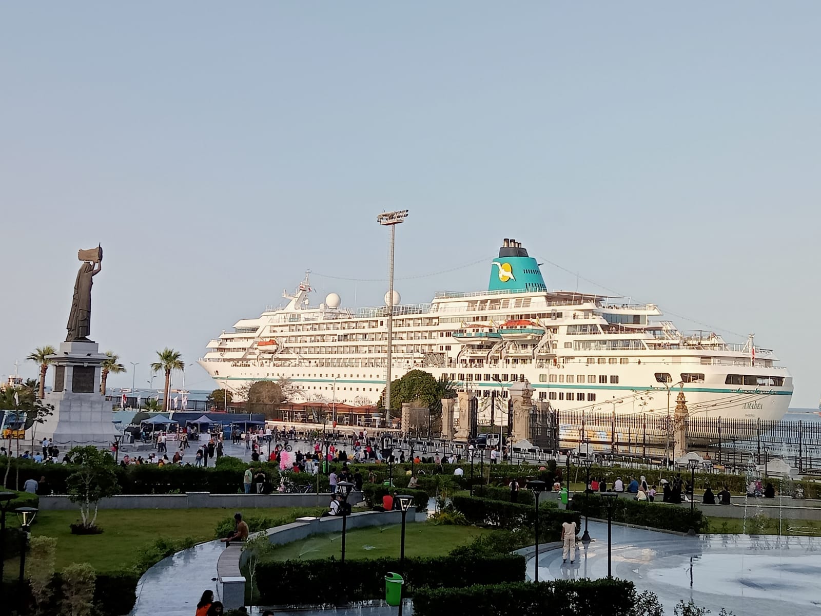 يذكر أنه تم إنهاء كافة الإجراءات اللازمة لدخول السفينة إلى الميناء وتراكيها على الرصيف، واستقبال السياح بصالة الوصول بسهولة ويسر.