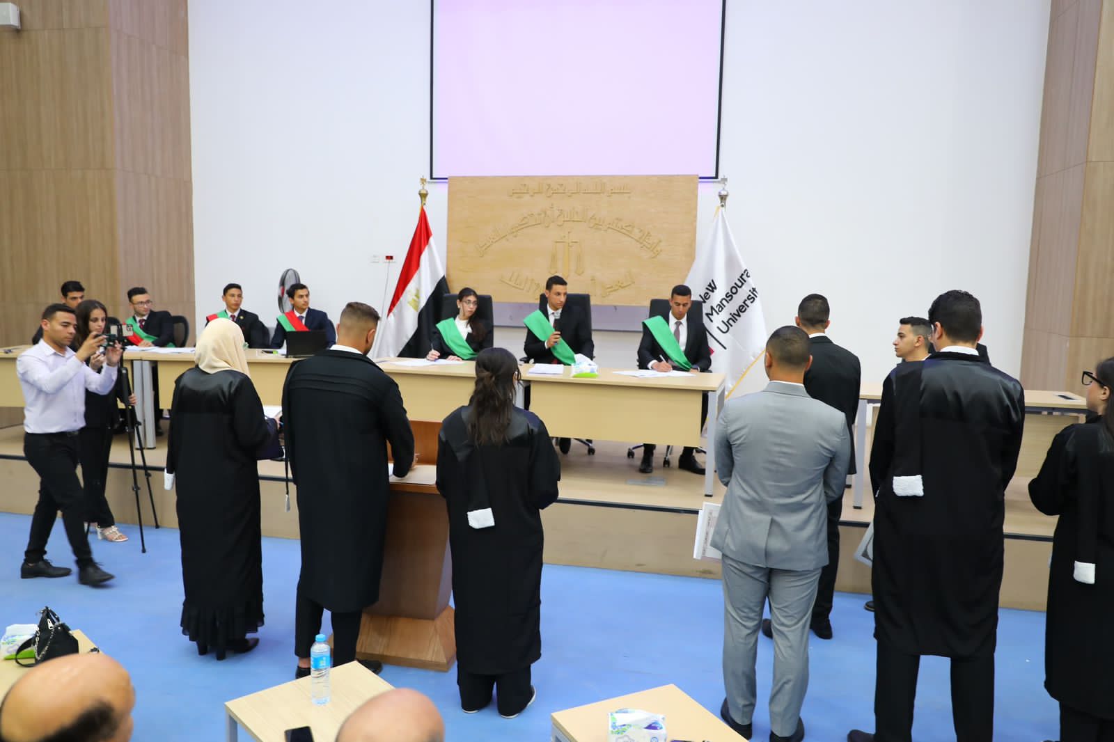 شهدت جامعة المنصورة الجديدة فعاليات المحاكمة الصورية في دورتها الأولى، والتي جسدها طلاب كلية المعاملات القانونية الدولية وتناولت المعالجة الافتراضية لجناية رشوة موظف عام.