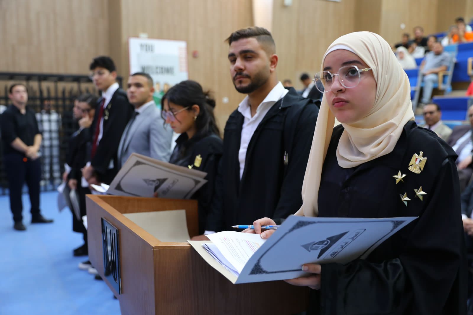 وجرت تلك الفاعلية برعاية وحضور رئيس الجامعة الدكتور معوض الخولي، وريادة الدكتور سامي عبد الكريم محمود مدير برنامج المعاملات القانونية الدولية، وشهدها لفيف من القضاة والمستشارين أعضاء الهيئات القضائية المختلفة ورؤساء المحاكم الجنائية والمدنية، وعمداء الكليات، ومديري البرامج، وأعضاء هيئة التدريس والعاملين والطلاب وأولياء أمورهم.