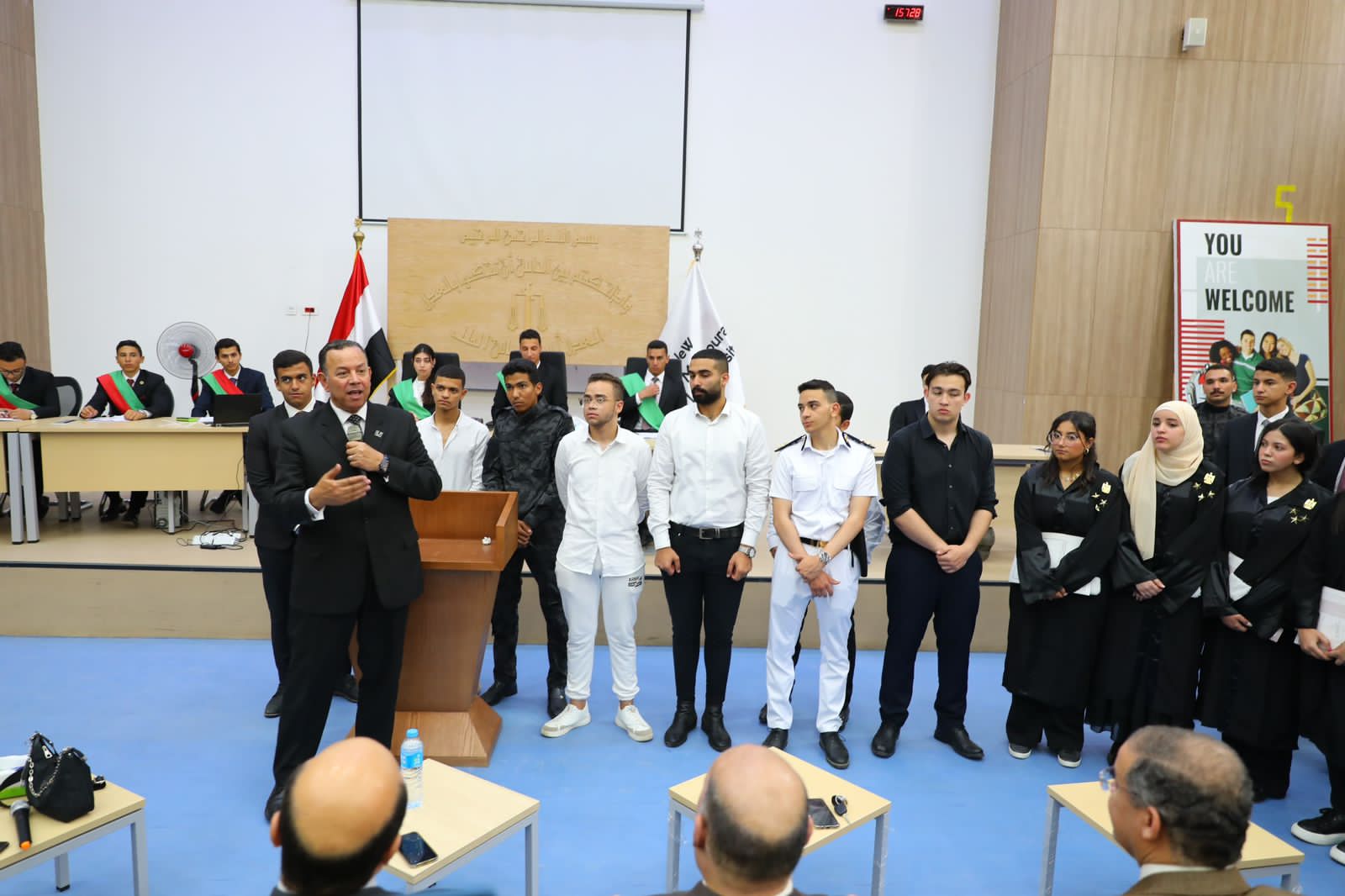 كما أكد على أن ميلاد الدورة الأولى للمحكمة الافتراضية مثل تحديا كبيرا في ظل حداثة نشأة الكلية والتي بدأت الدراسة بها في العام الماضي كما أثنى على الأداء المتميز للطلاب في أداء أدوارهم وتفاعلهم مع فريق الاشراف والتدريب واستجابتهم للتعليمات والنصائح التي وجهت إليهم وتنفيذ المهام الموكلة لكل منهم بكل جدية ومسئولية.