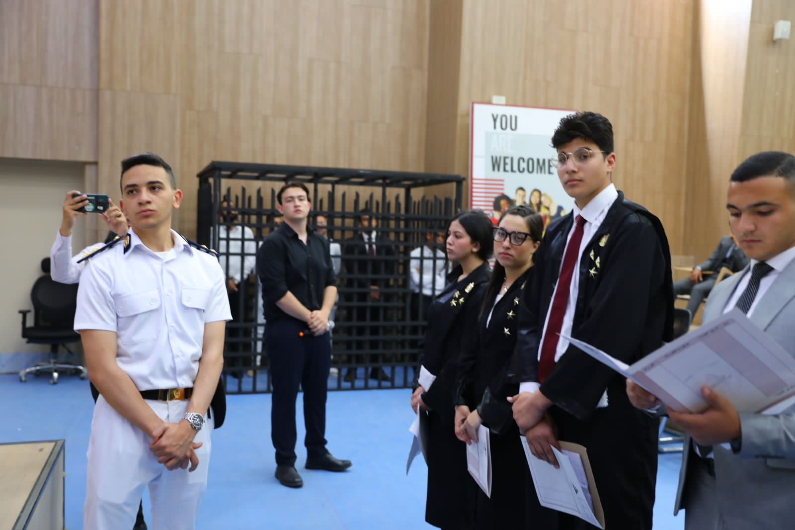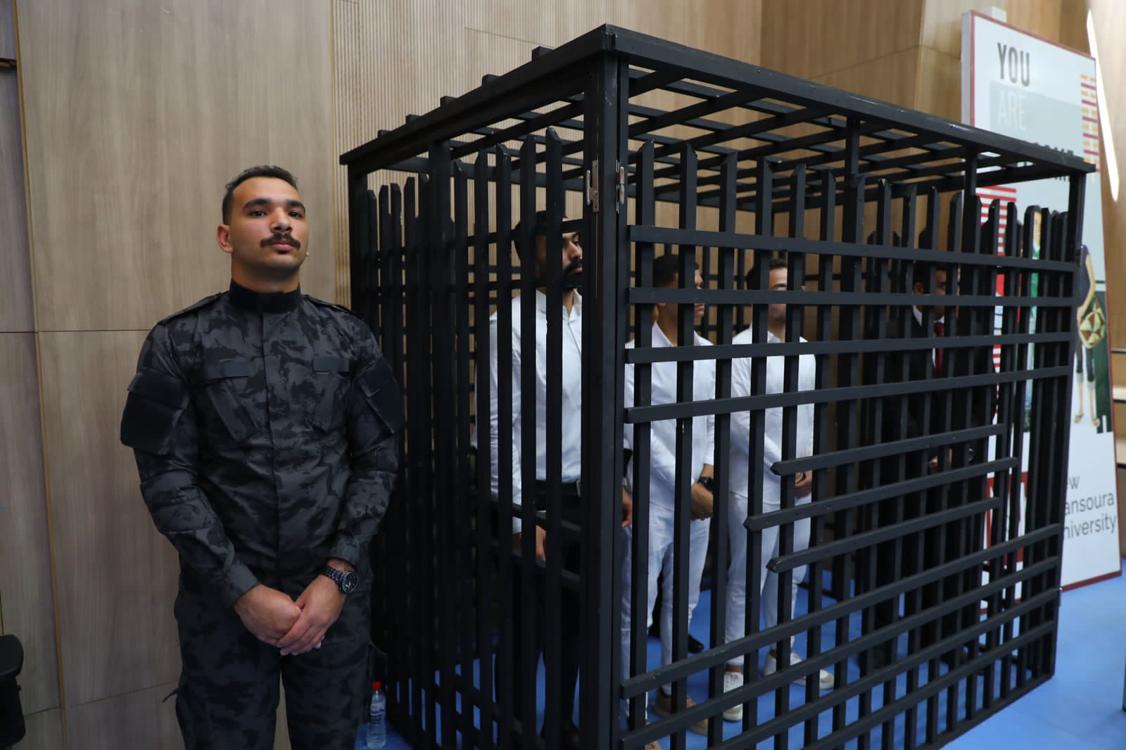 محاكمة صورية بجامعة المنصورة الجديدة تعالج قضية رشوة موظف (صور)