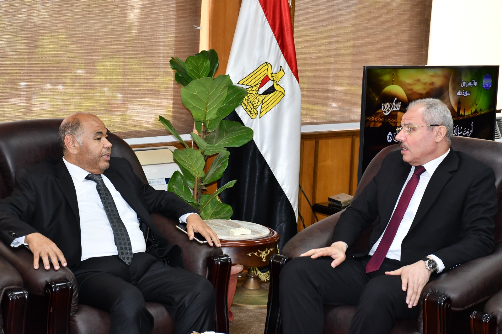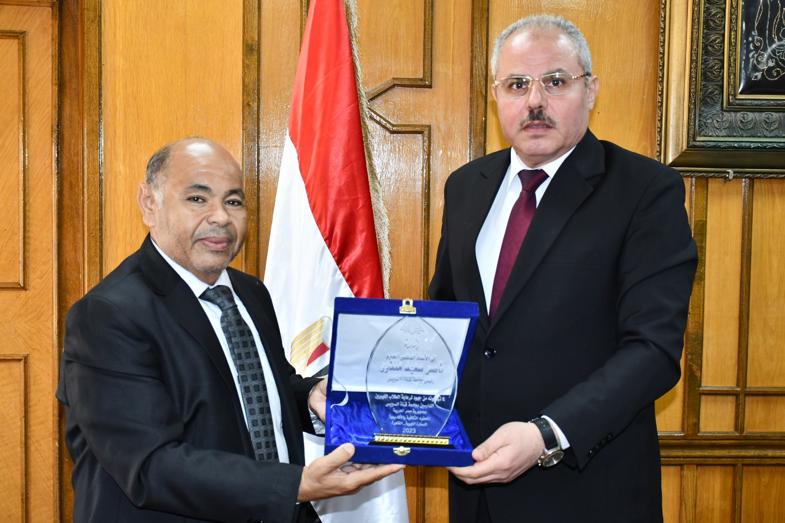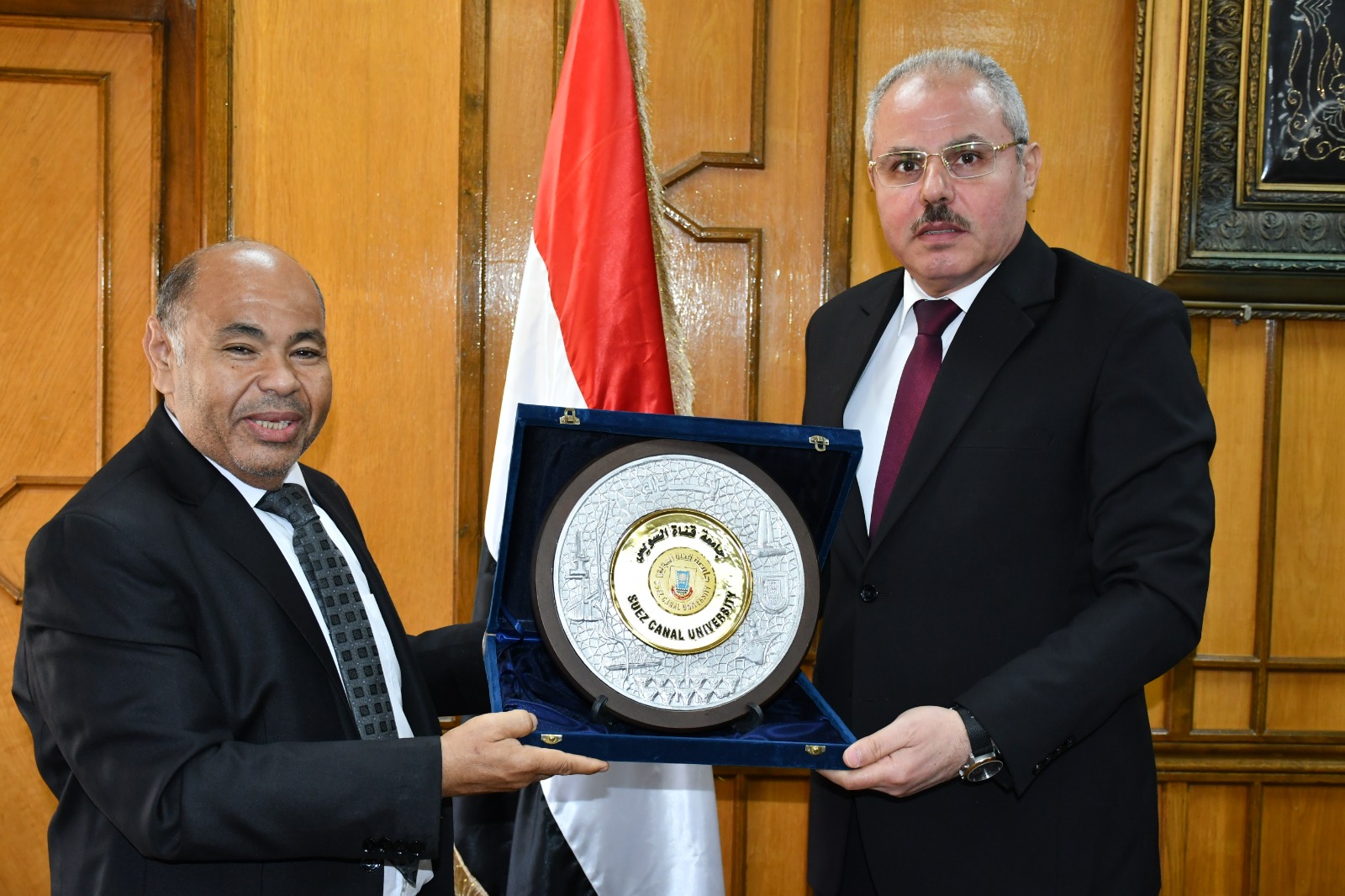 الملحقية الثقافية الليبية تمنح درعها لرئيس جامعة قناة السويس ونائبه (صور)