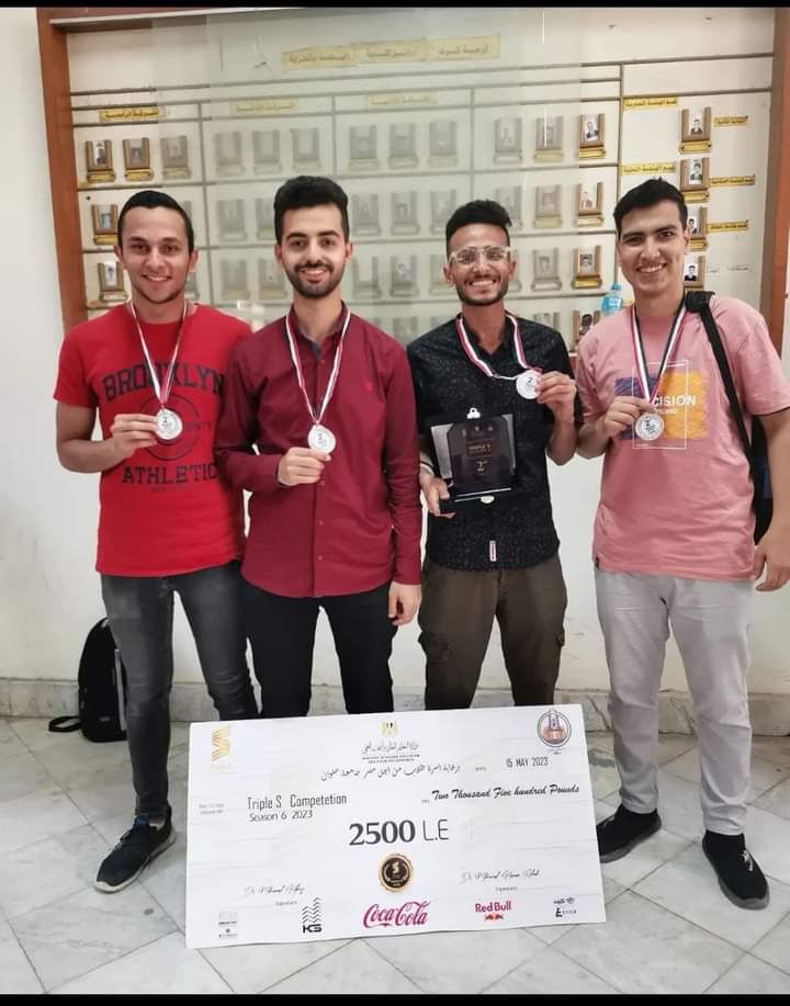 الفرق الفائزة فى مسابقة EBD من كلية الهندسة بجامعة المنصورة المركز الثاني فريق Impact مصطفى فكرى السيد، مصطفى أشرف اسعد، عمر احمد محمد، مينا ابراهيم جاد.