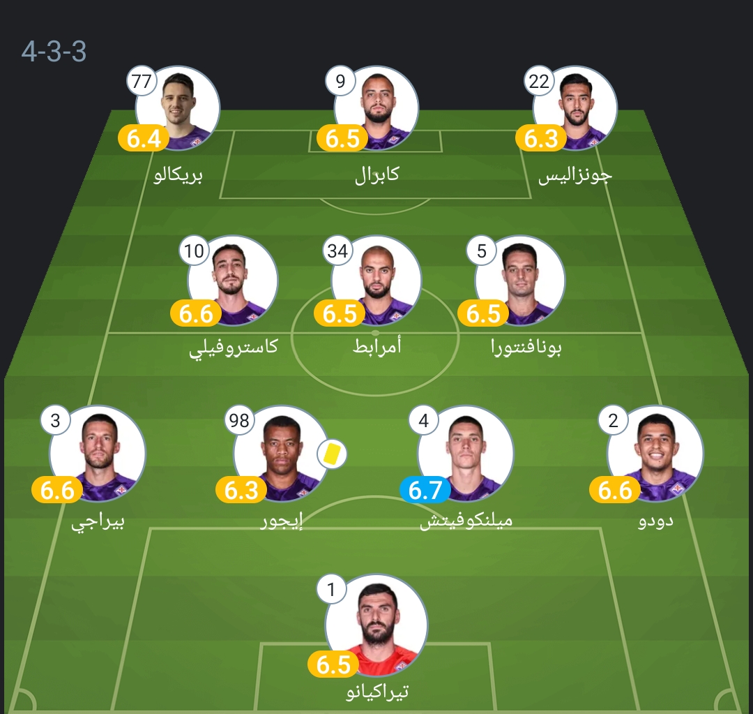 خط الوسط: بونافنتورا - سفيان أمرابط - كاستورفيلي