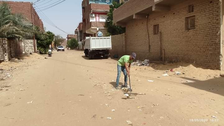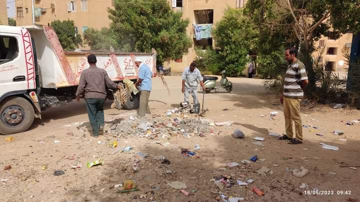 وأشار المتولي، إلي أعمال النظافة بطريق الخارجة اسيوط وطريق الخارجة الداخلة وشارع عارف والدكتور الذهبى وشارع الاذاعة وحى السلام والزهور ومنطقة السحابة وميتالكو وعمارات الاولى بالرعاية وحى الزهور والمروة والبساتين وشارع الهلال الأحمر وسنتر البساتين وشارع النبوى المهندس وذلك عن طريق رفع القمامة ورفع مخلفات زراعية.