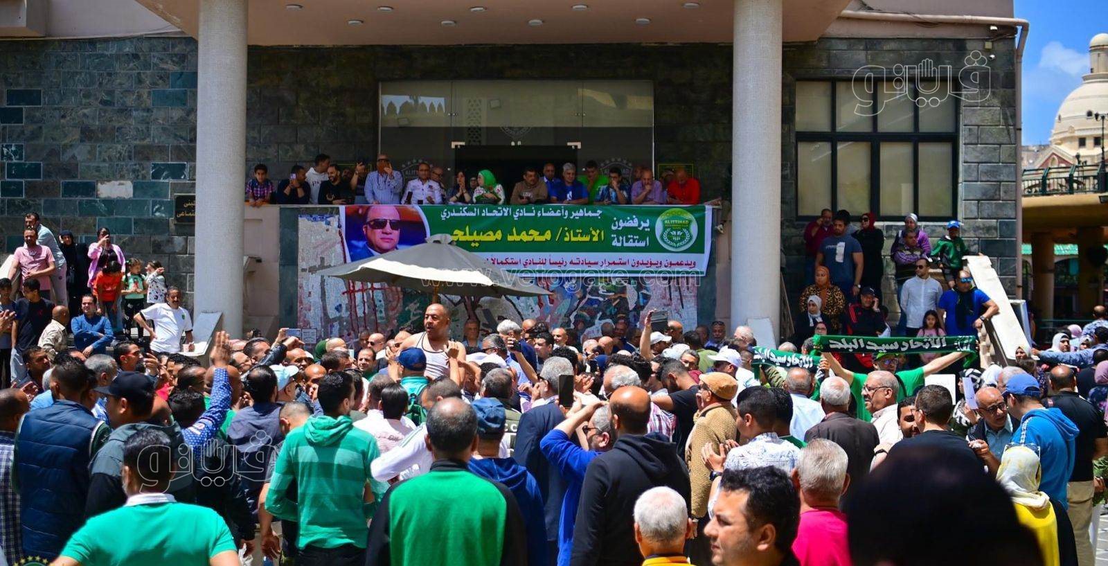 شهد نادي الاتحاد السكندري بفرعيه الرئيسي بالشاطبي وسموحة، تواجد عدد كبير من أعضاء النادي في مظاهرة لإعلان رفضهم لاستقالة محمد مصيلحى رئيس النادي الذي قدمها لوزير الشباب والرياضة أول أمس، بعد اخفاق فريق السلة من الحصول علي البطولة الأخيرة وتعثر استكمال فرع سموحة وتعثر فريق كرة القدم في الدوري.
