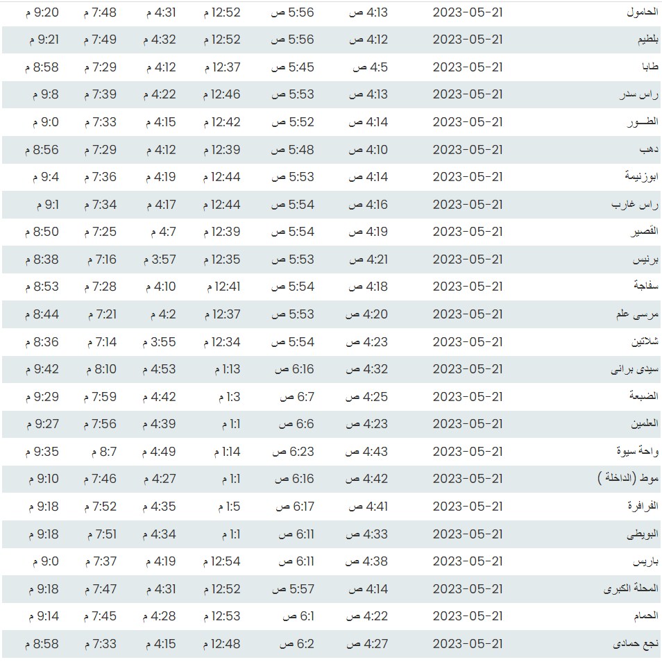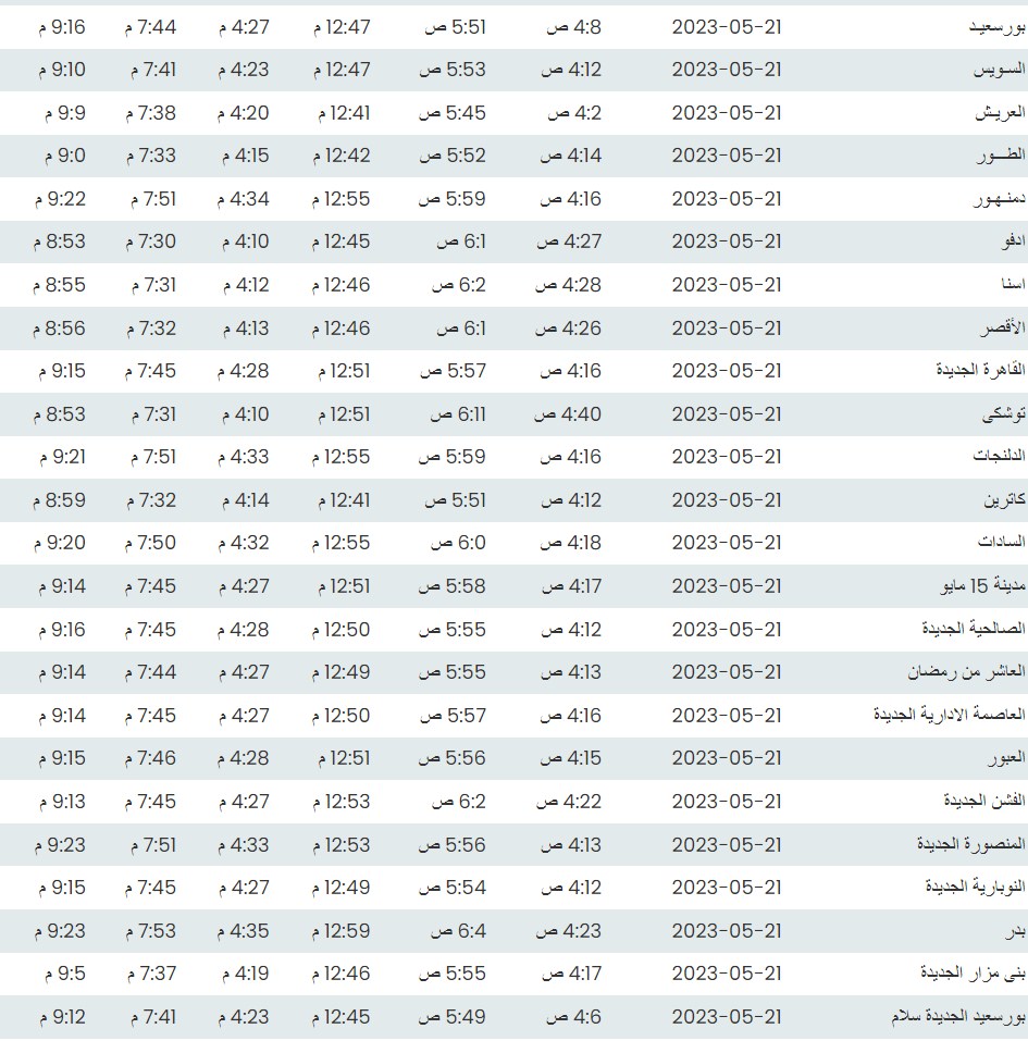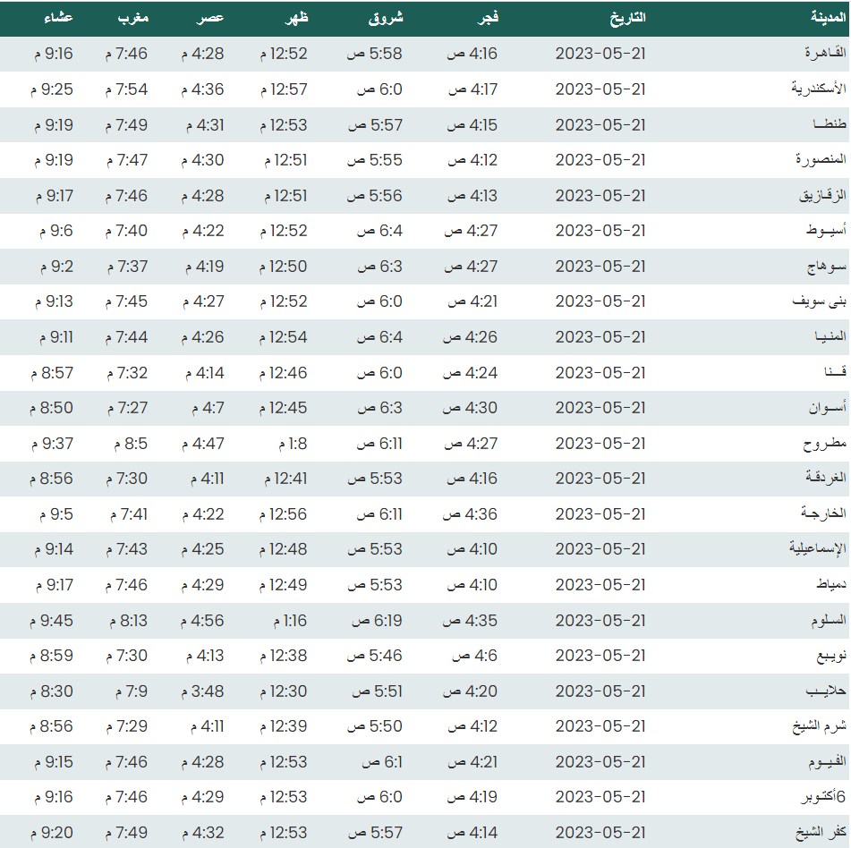 مواقيت الصلاة اليوم بتوقيت القاهرة