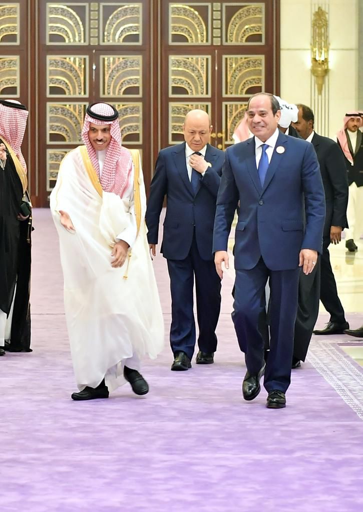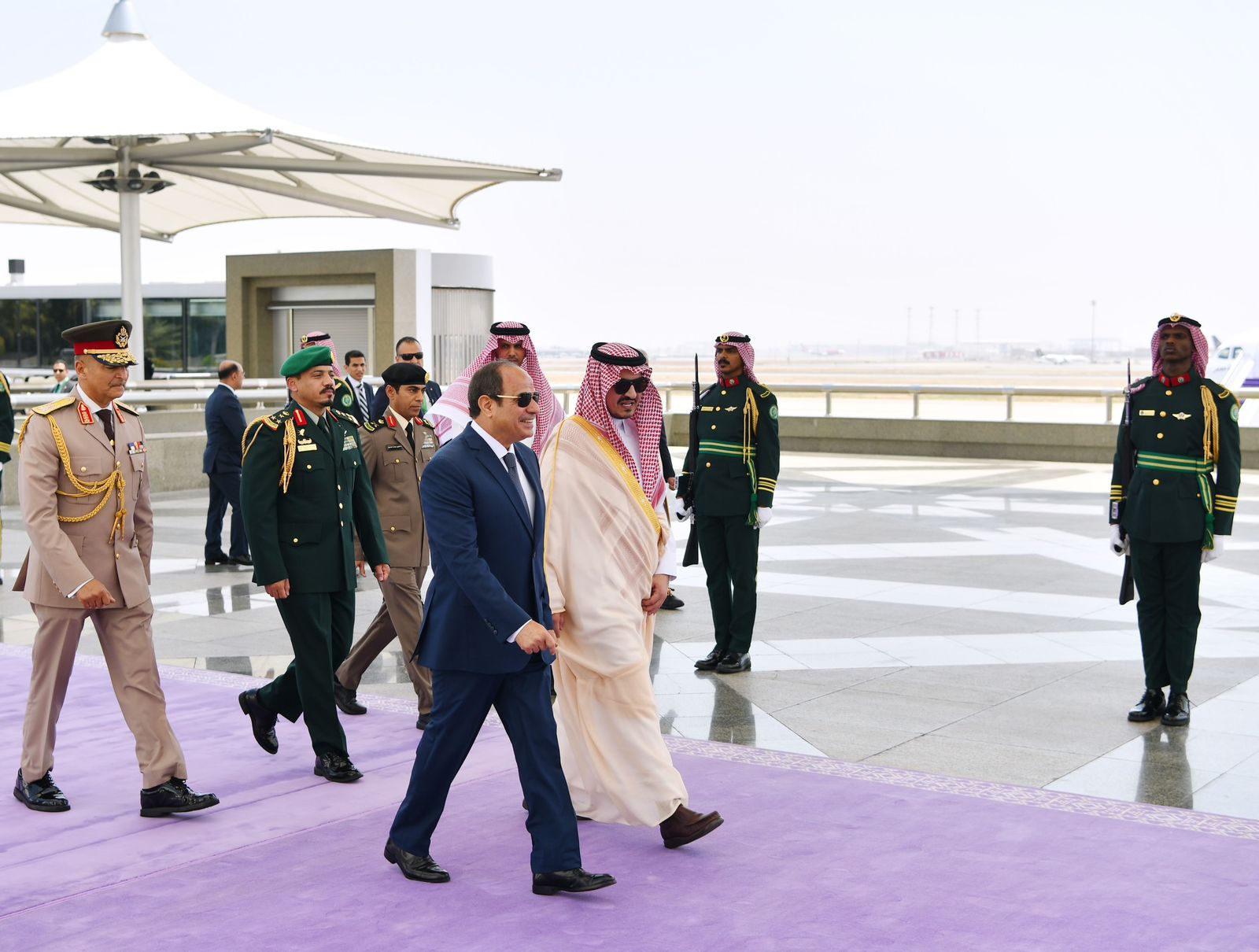 من جانبه، أعرب الرئيس عن سعادته بزيارة المملكة العربية السعودية الشقيقة، مؤكدًا اعتزاز مصر بالروابط التاريخية التي تجمع بين البلدين والشعبين الشقيقين، وتقدم بالتهنئة لسمو ولي العهد على تولي السعودية رئاسة القمة العربية في دورتها الثانية والثلاثين، معربًا عن تمنيات مصر وثقتها في نجاح السعودية في تعزيز العمل العربي المشترك خلال الفترة المقبلة.