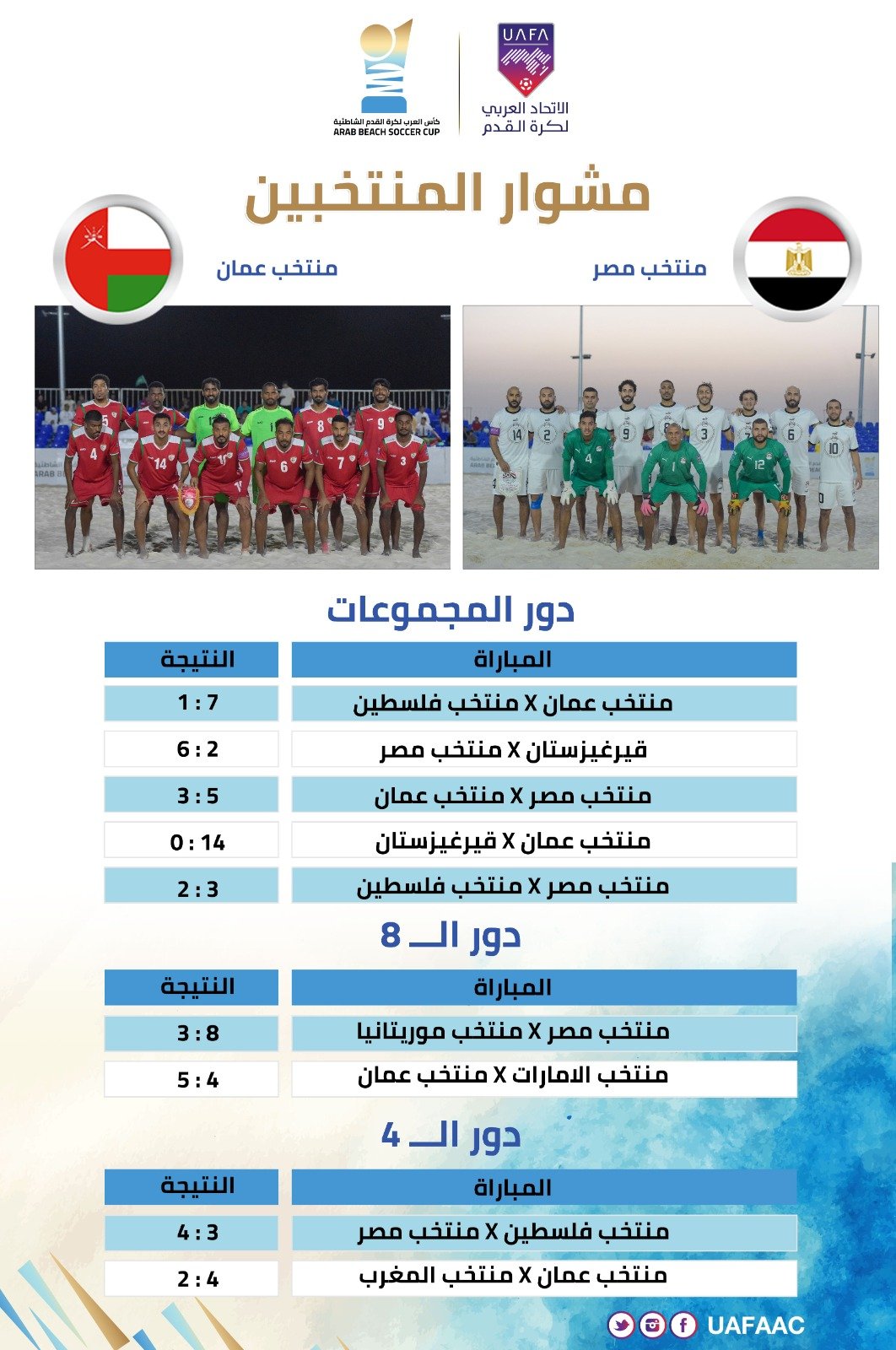 مشوار مصر وعمان نحو نهائي كأس العرب للكرة الشاطئية