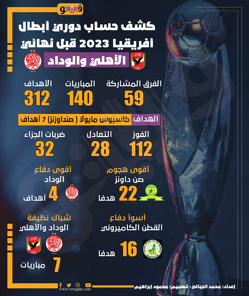 كشف حساب دوري أبطال أفريقيا 2023 قبل نهائي الأهلي والوداد ( انفوجراف ) السبت 20/مايو/2023 - 08:53 م 5/20/2023 8:53:30 PM صن داونز، فيتو إعداد محمد الجبالي شارك طباعة 18 حجم الخط شارك طباعة