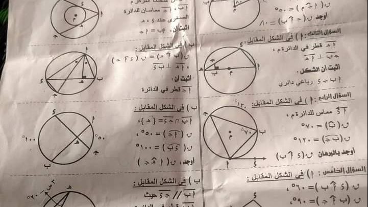 امتحانات الشهادة الإعدادية، سادت حالة من الدهشة والغرابة بين أولياء الأمور والطلاب بمحافظة القليوبية على خلفية امتحان الهندسة الذي أداه الطلاب اليوم والذي جاء فيه ٨ أسئلة برسمة هندسية الدائرة والتي لم تراعِ مواصفات الورقة الامتحانية في التنوع في الأسئلة.