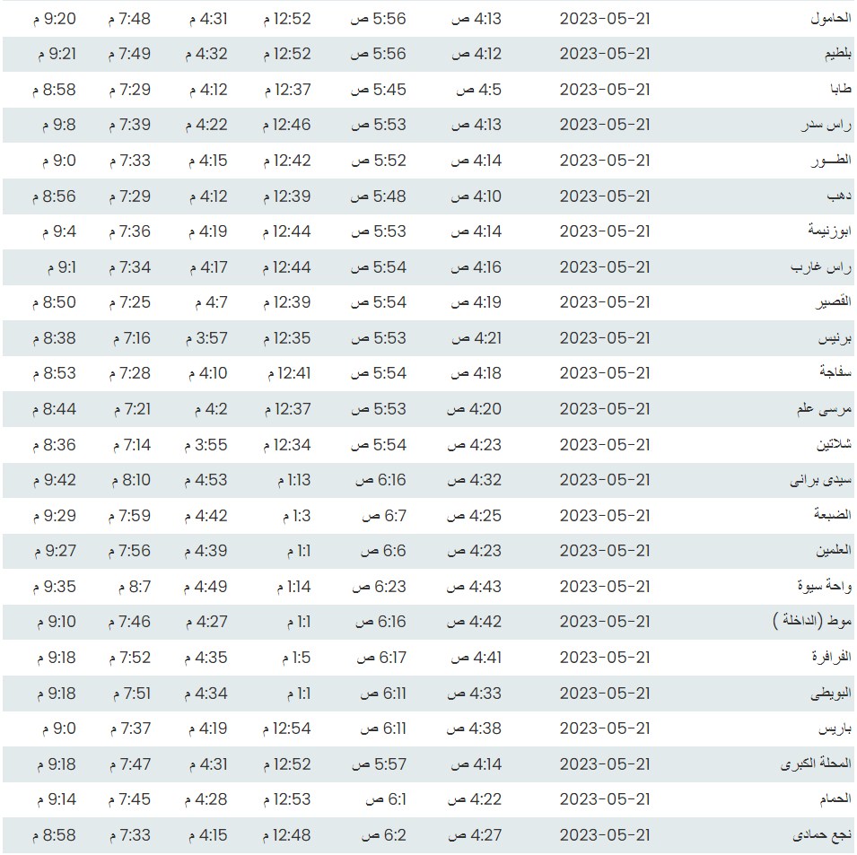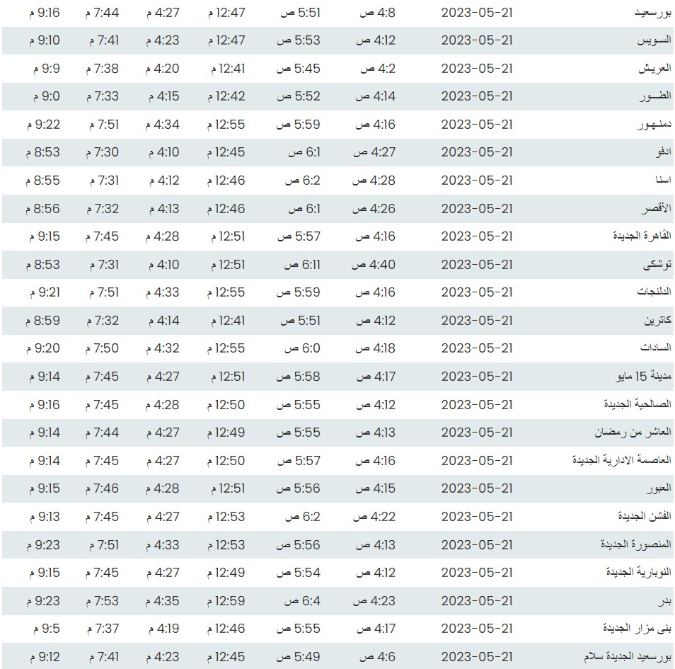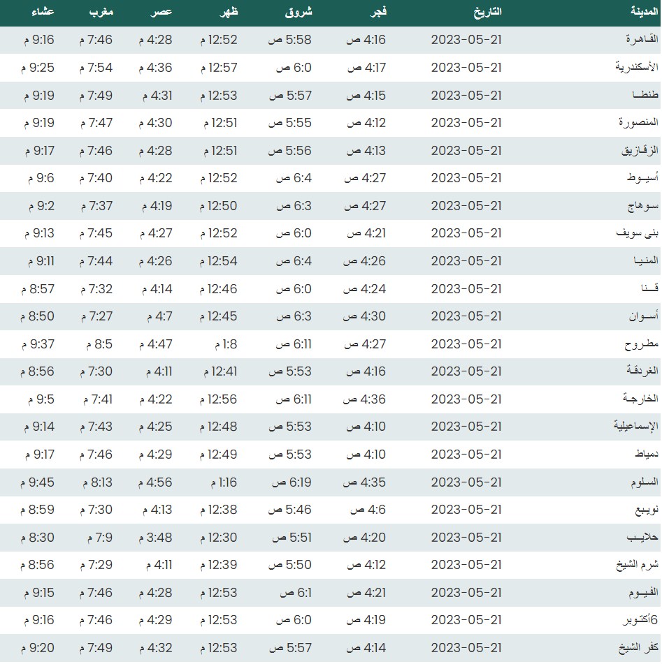 مواقيت الصلاة اليوم بتوقيت القاهرة